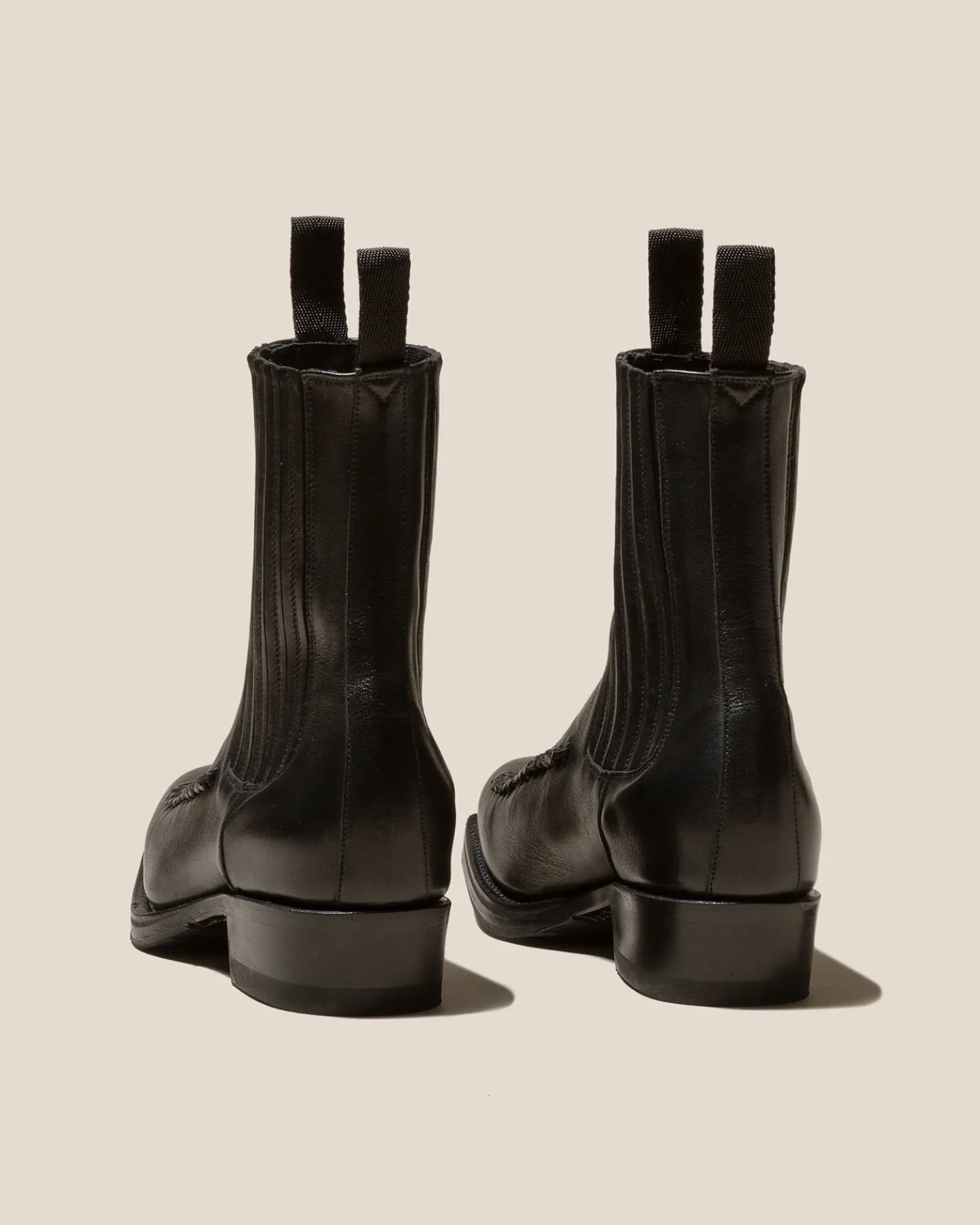 Square toe chelsea boot with braided details.