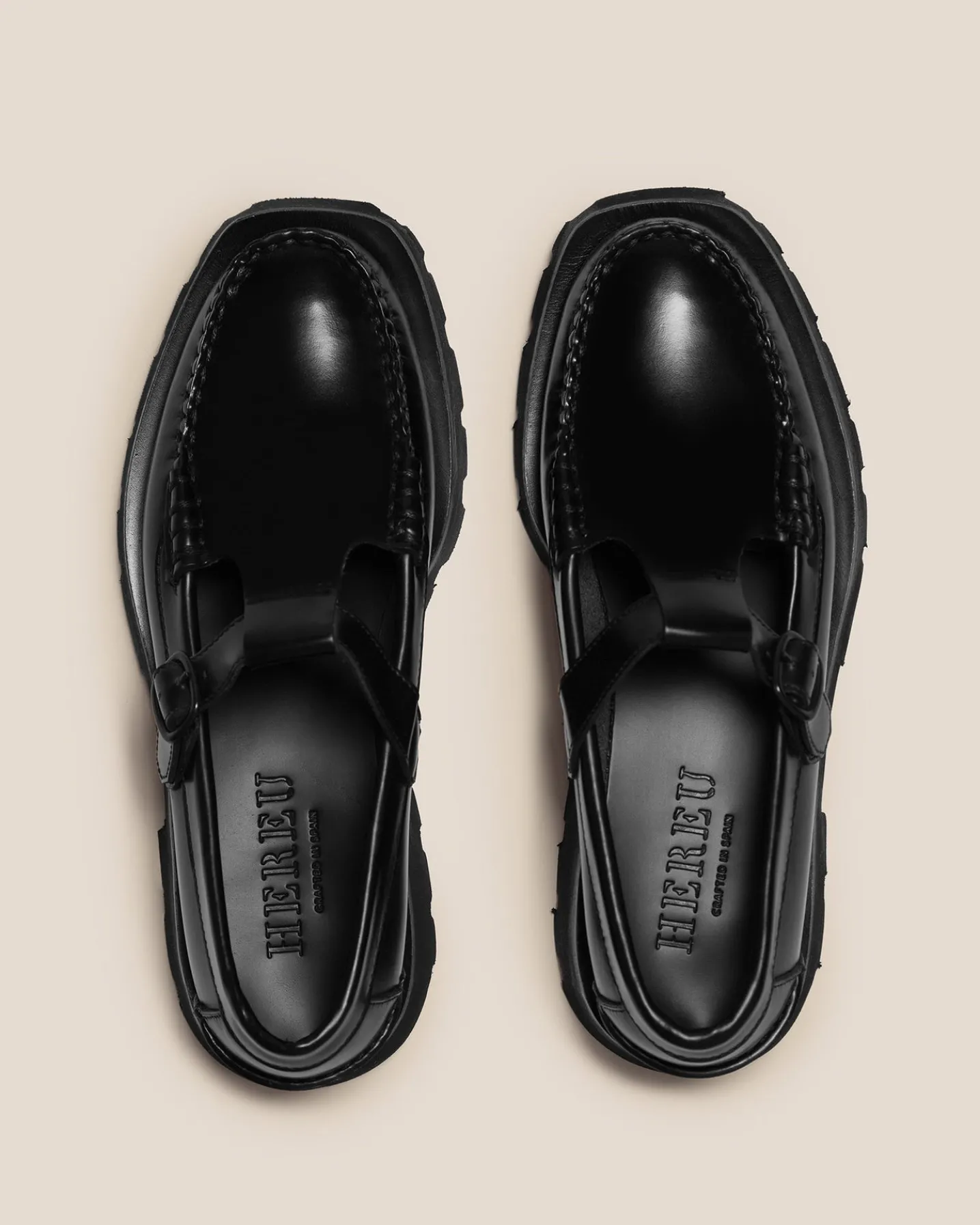 T-bar loafer crafted in Spanish calf leather updated with a blown rubber tread sole. Hand-sewn using the traditional moccasin construction.