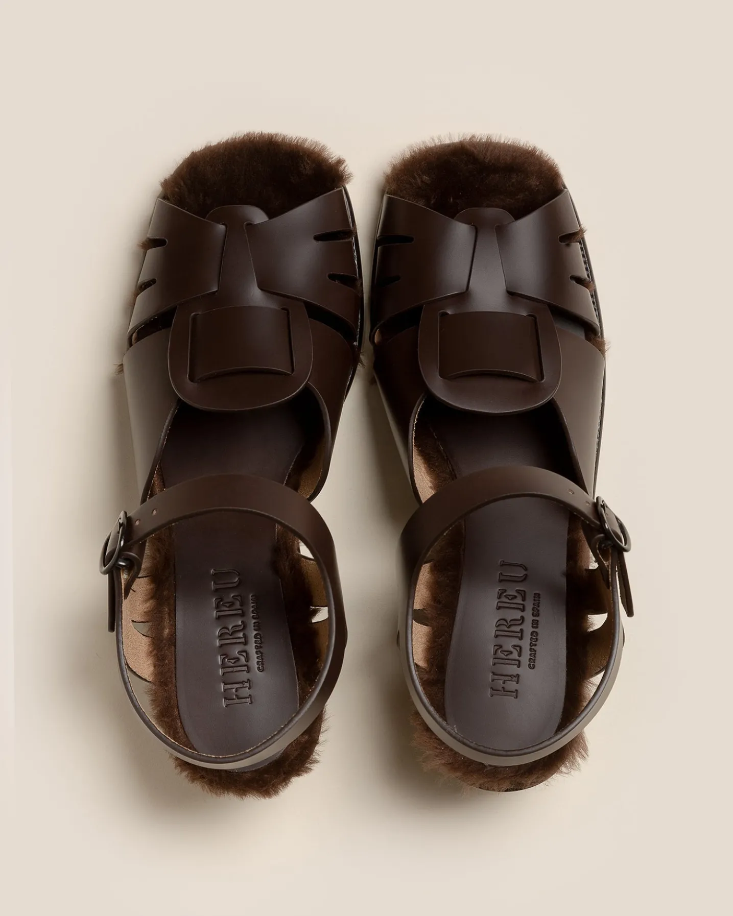 Squared open-toe fisherman sandal with cut out front detail, crafted in structured calf leather.