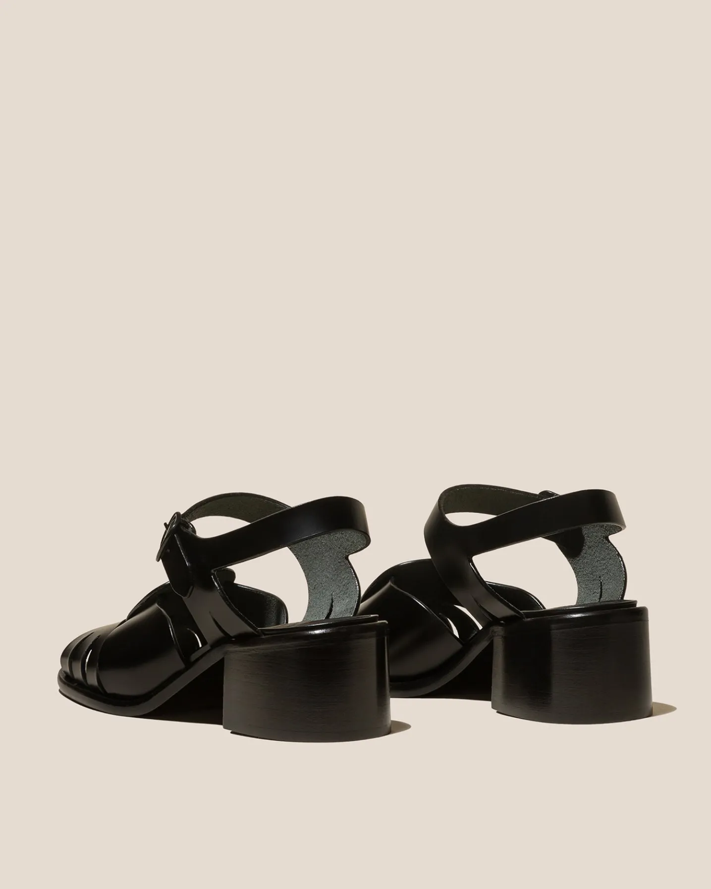 Squared open-toe fisherman sandal with cut out front detail, crafted in structured calf leather.