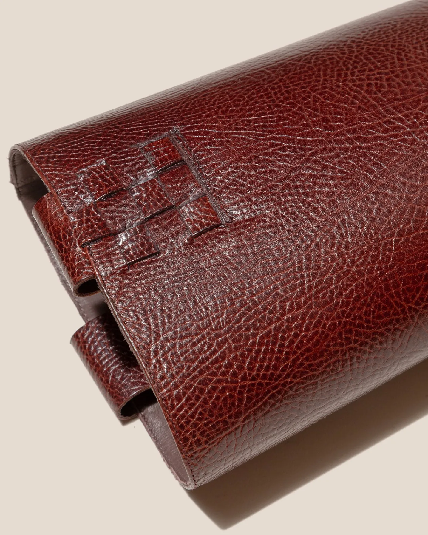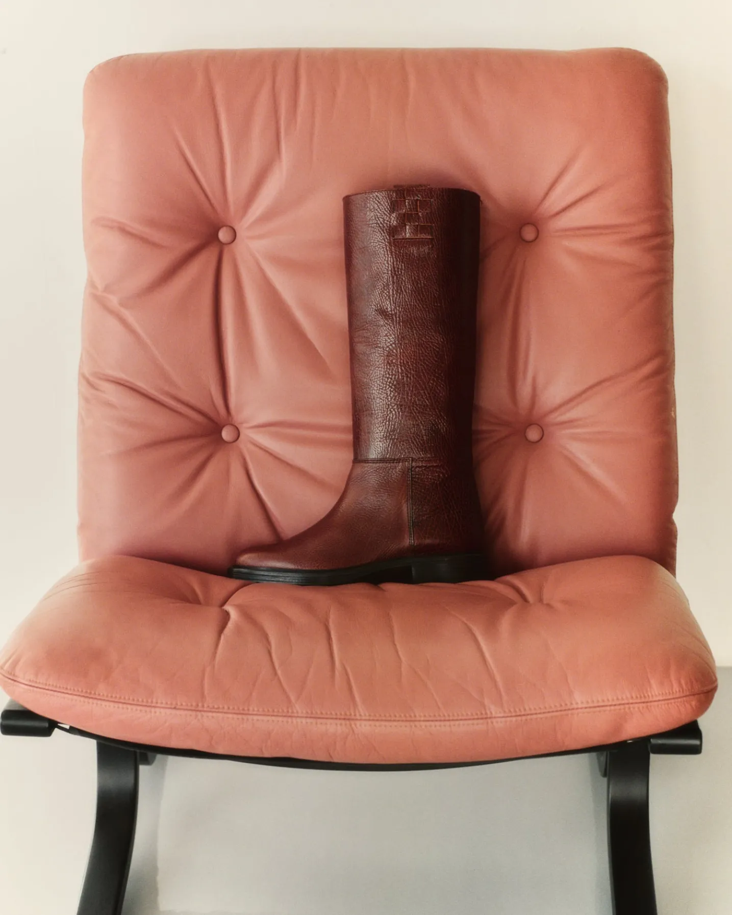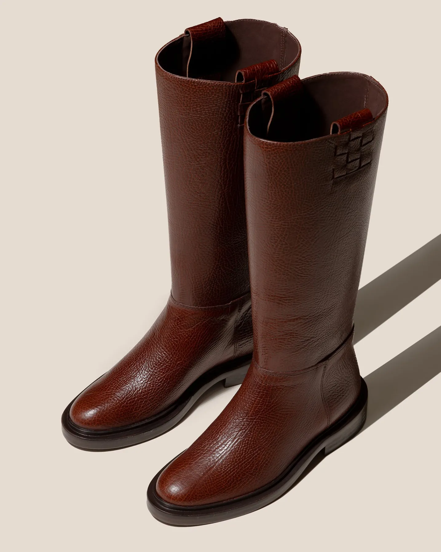 Under the knee pull-on boot with side interwoven detail, crafted in tumbled calf leather.