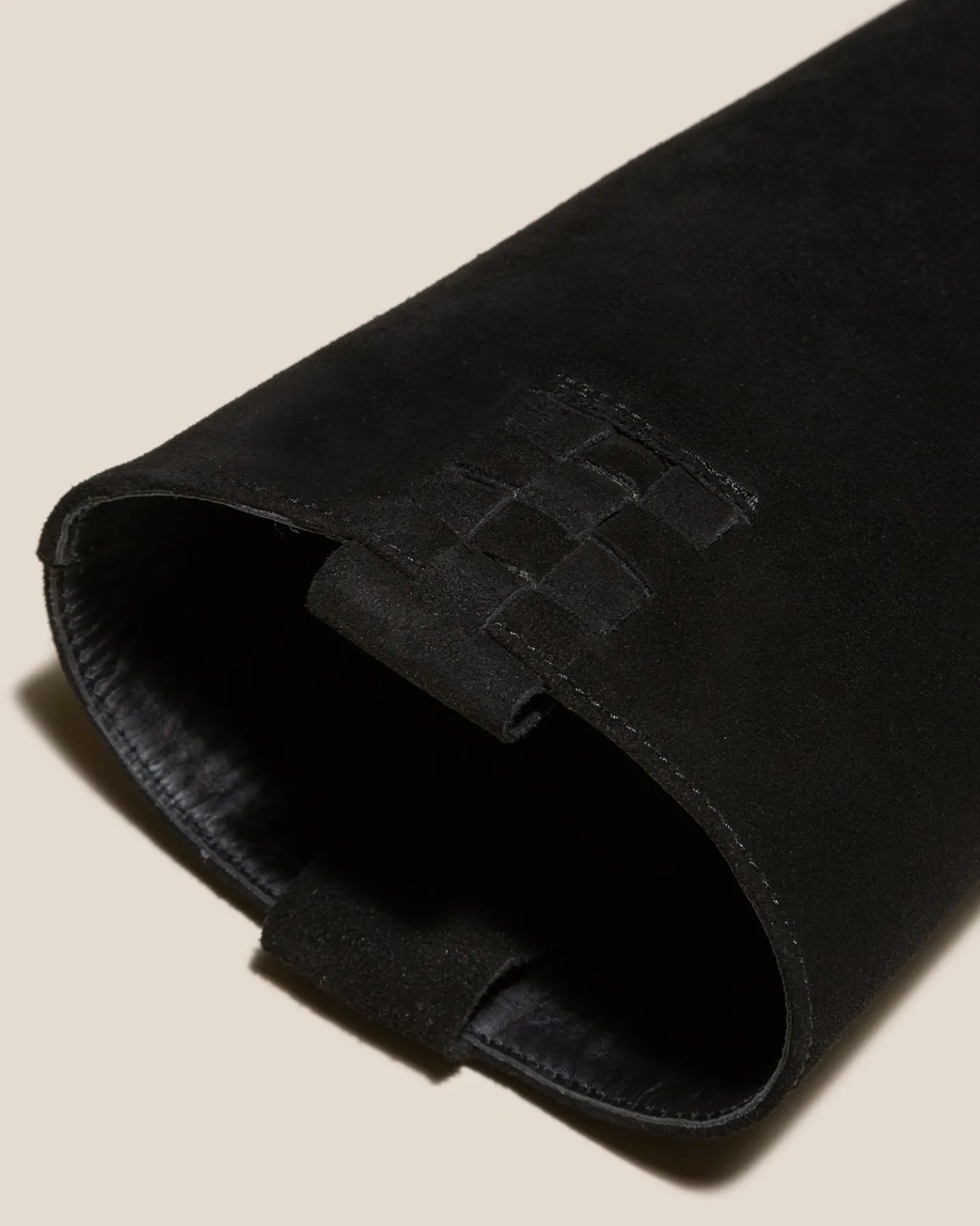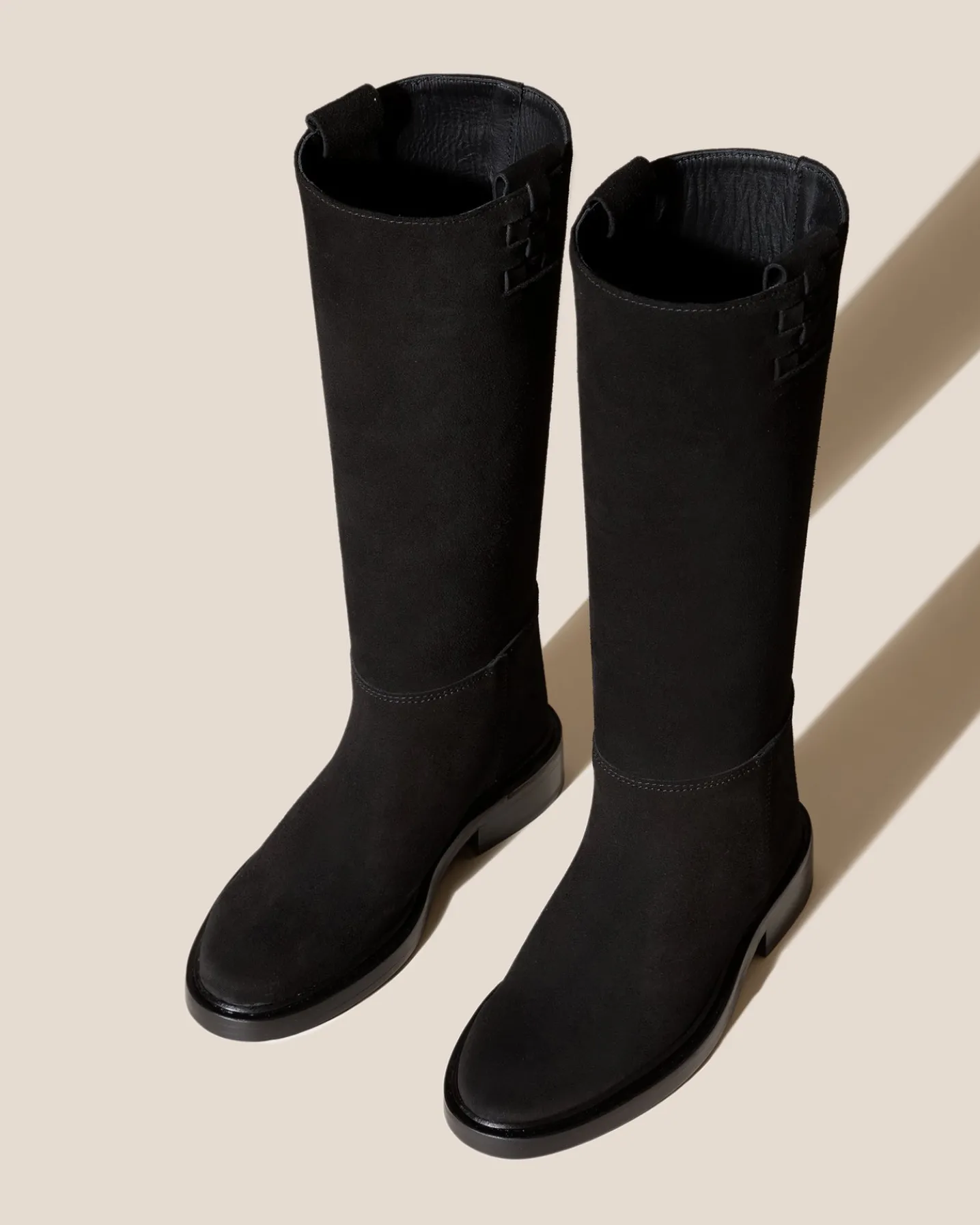 Under the knee pull-on boot with side interwoven detail. Crafted in Spanish suede leather and lined with calf leather lining.