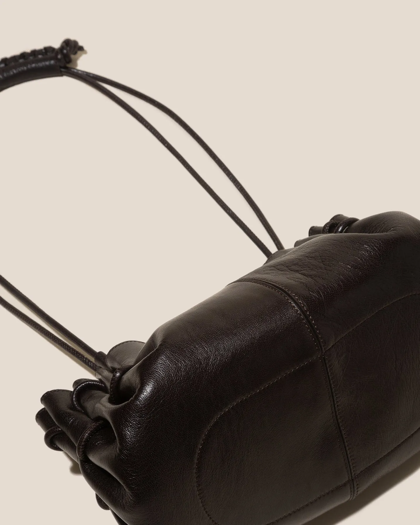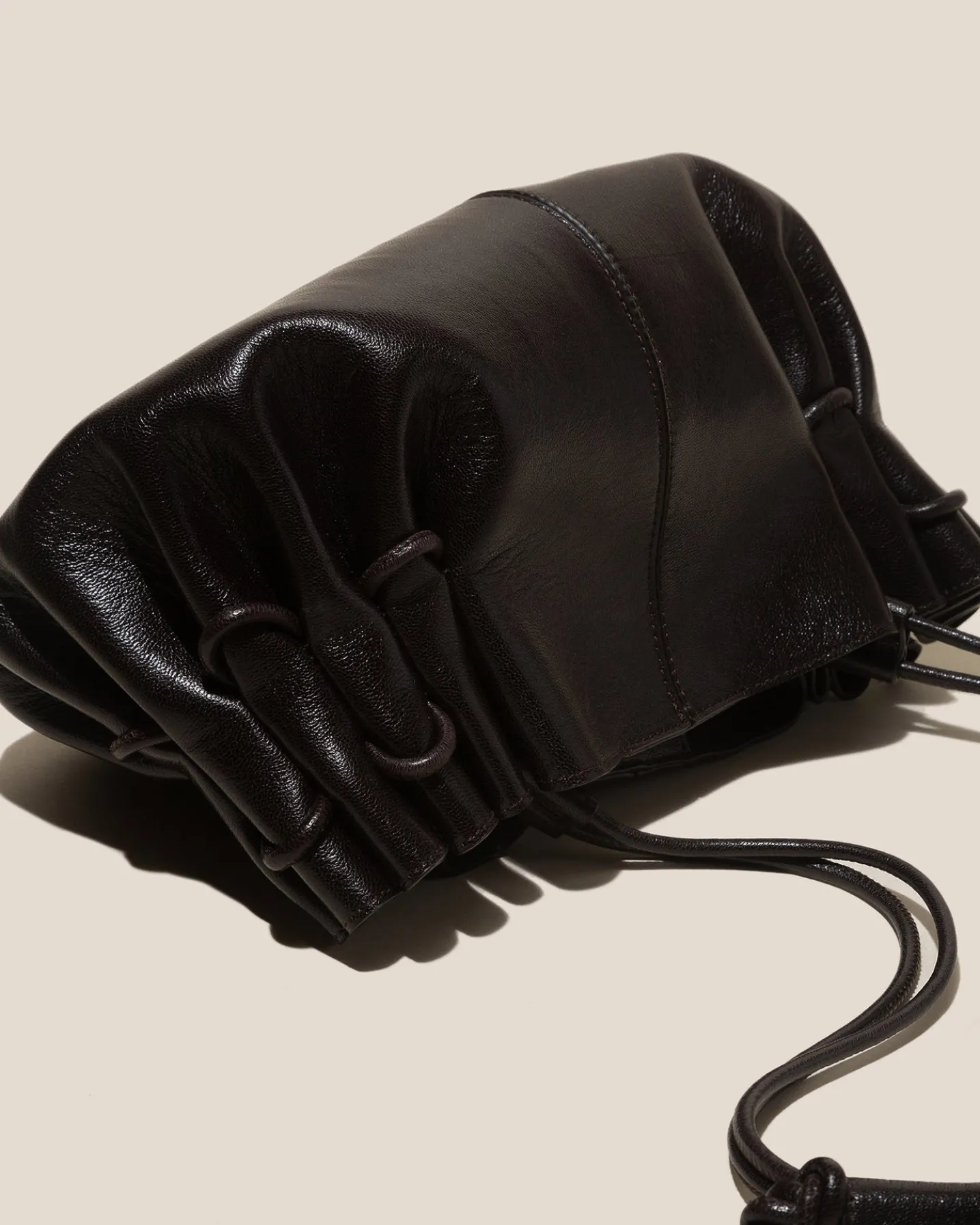 Pleated hand/shoulder bag crafted in supple shiny lambskin.