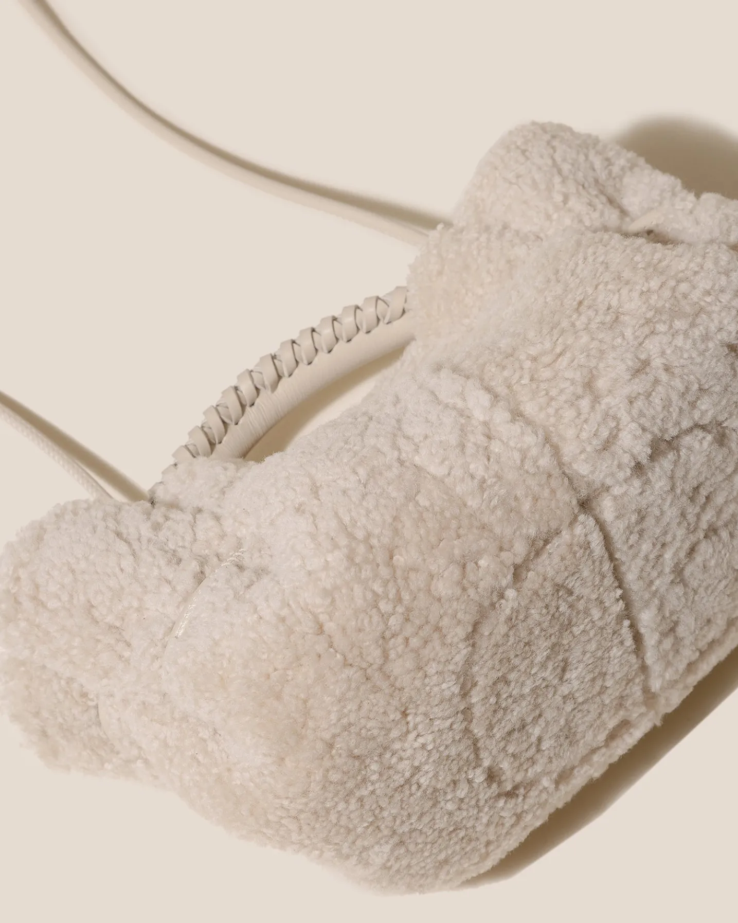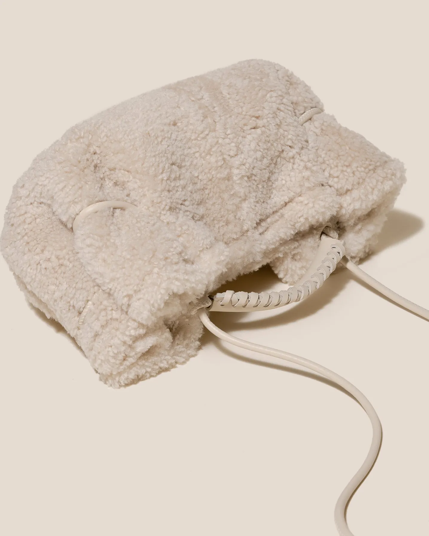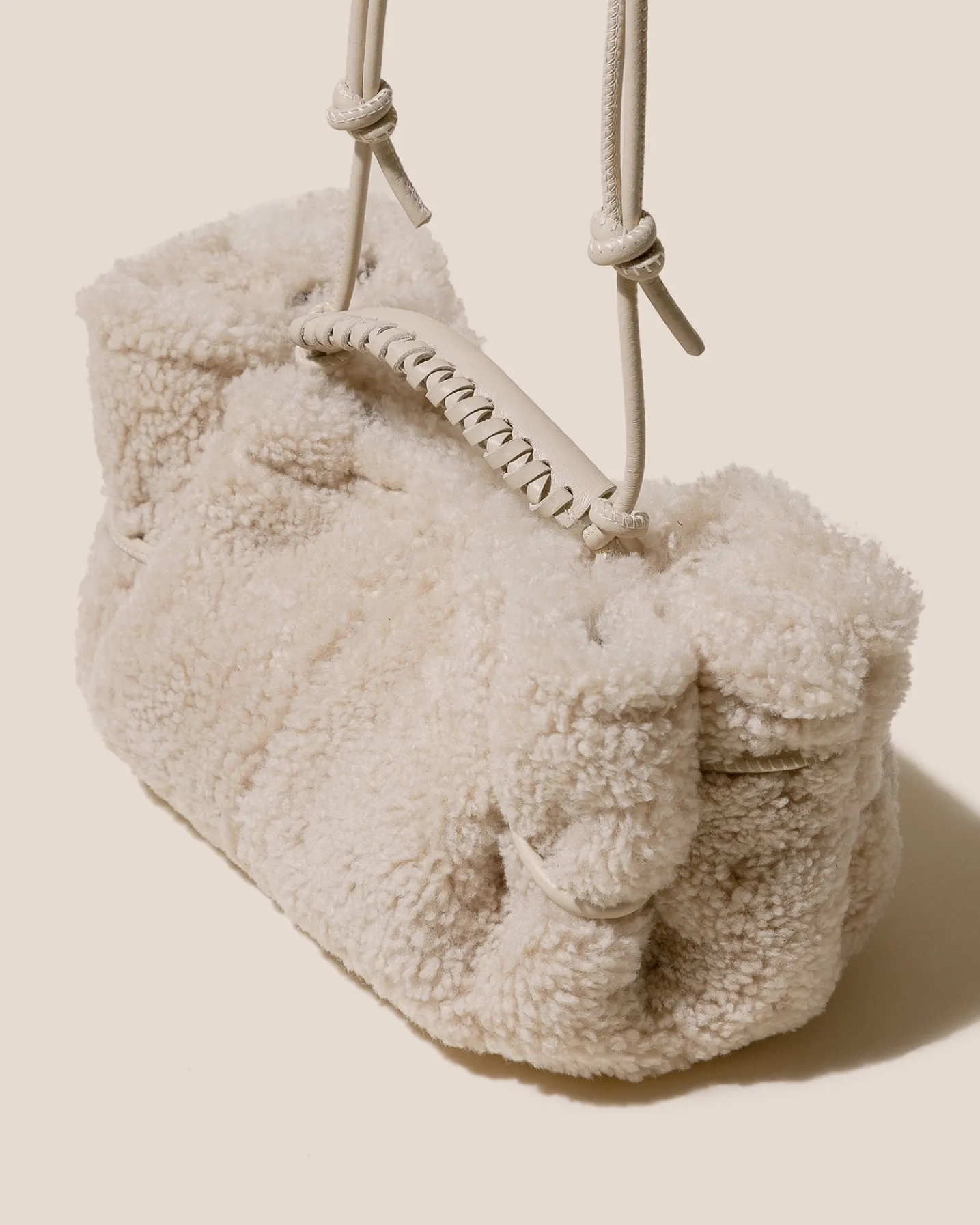 Small pleated crossbody / handbag crafted in shearling lambskin.