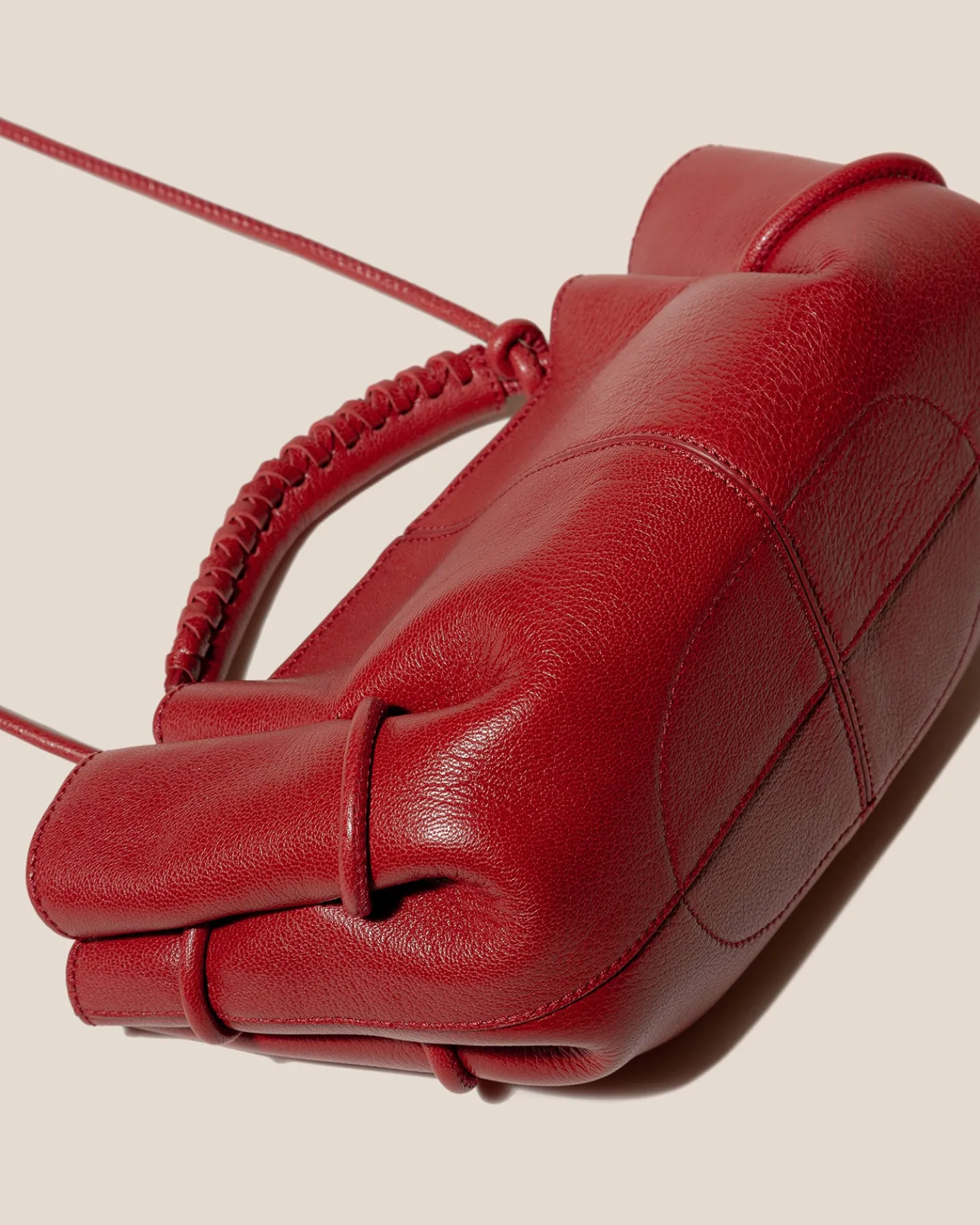 Small pleated crossbody/ handbag crafted in supple shiny lambskin.