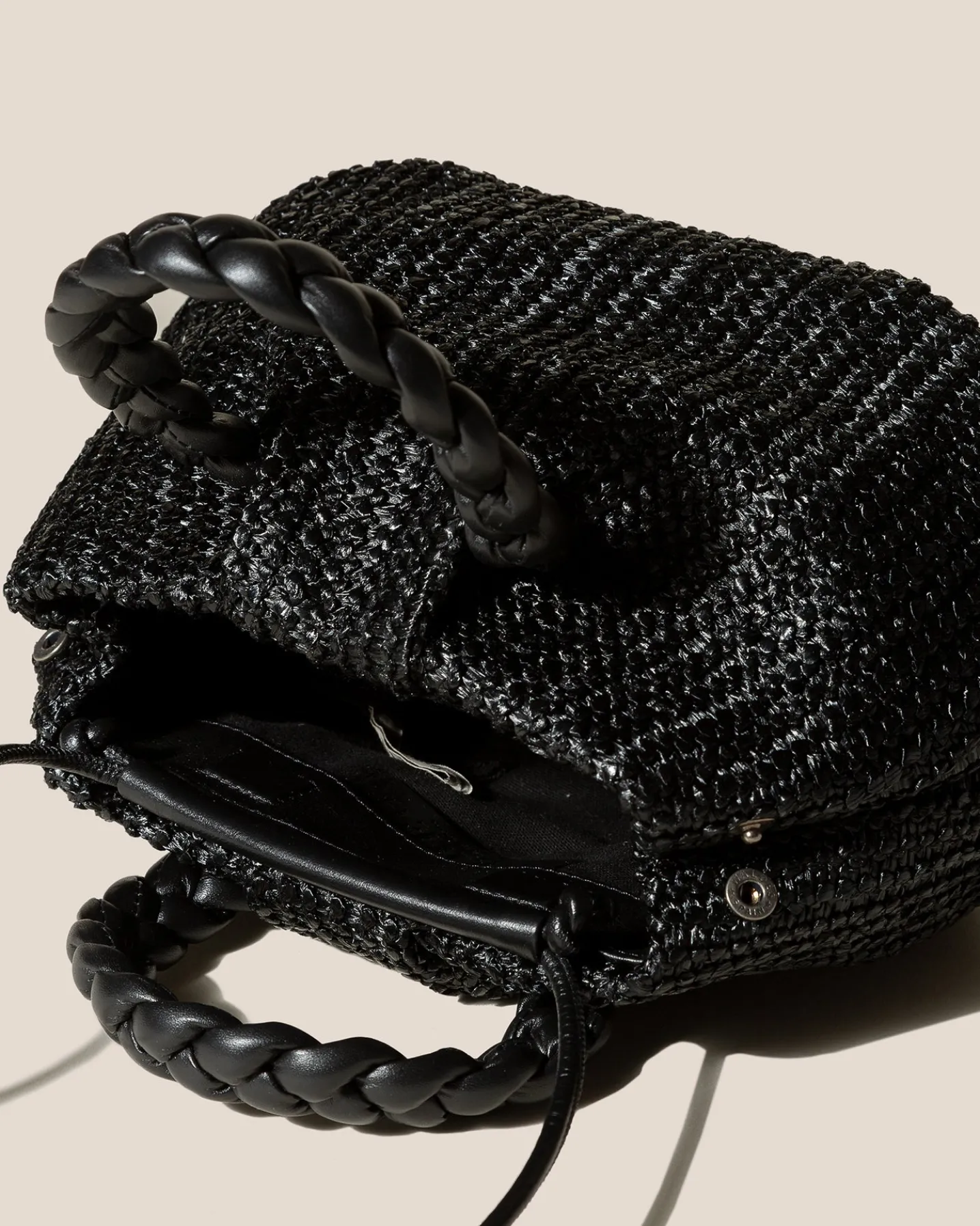 Mediumraffiatote with braided leather handles, lined with organic cotton canvas.