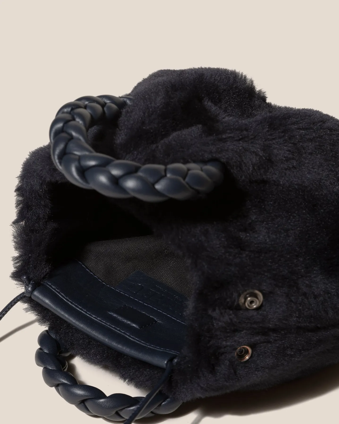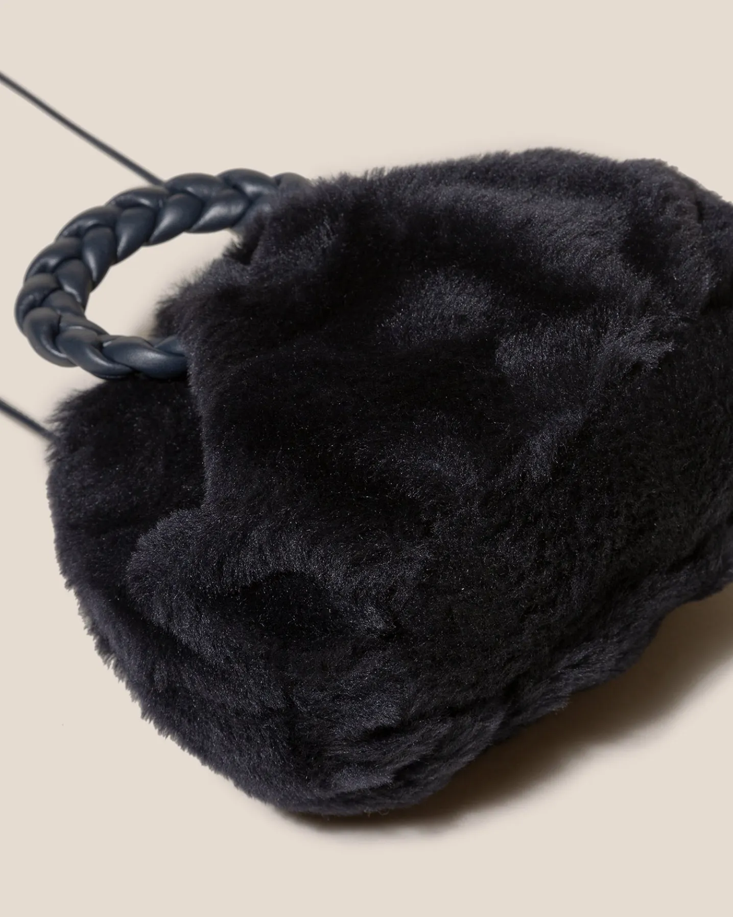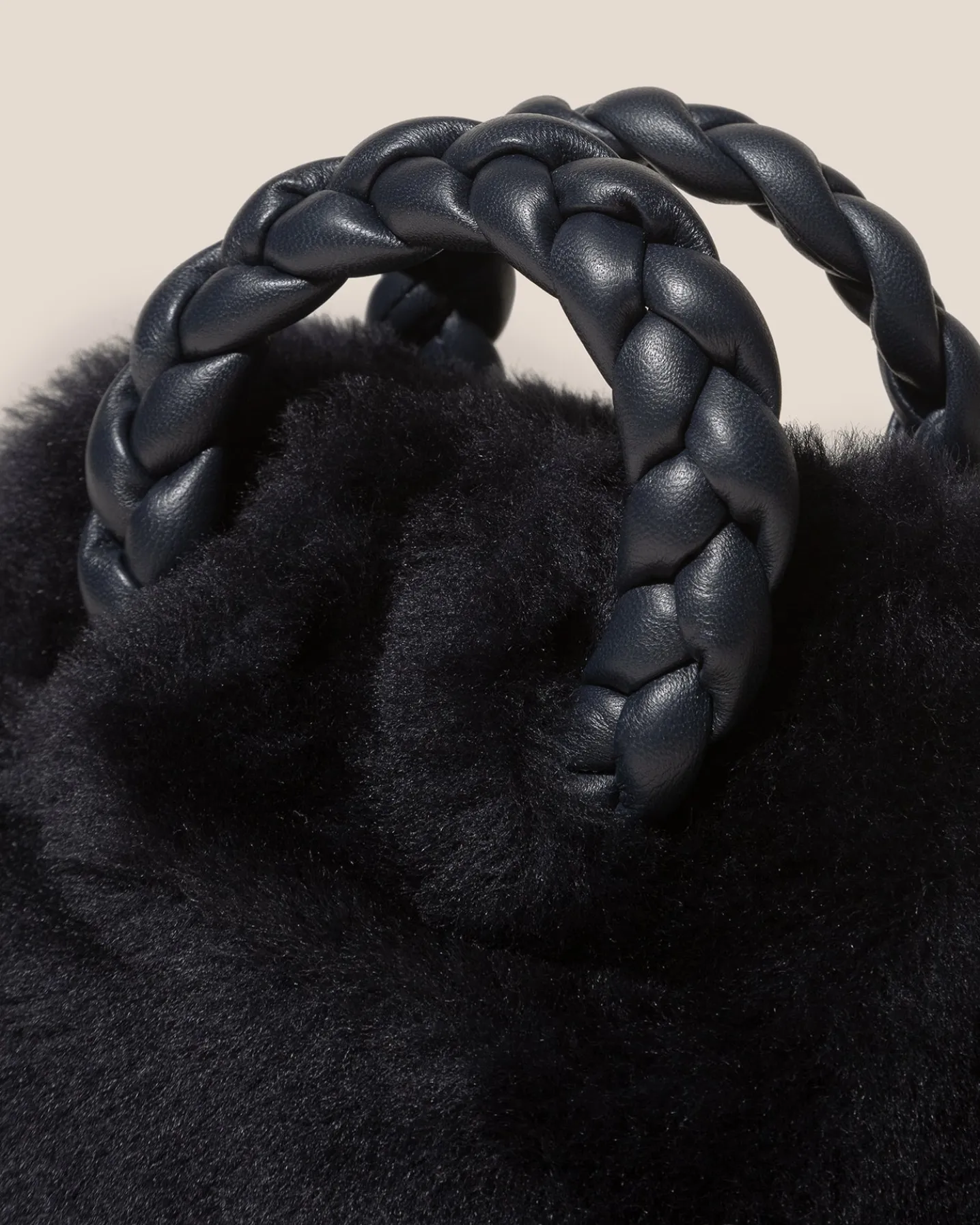 Small crossbody bag with braided leather handles, crafted in shearling sheepskin and supple lambskin.