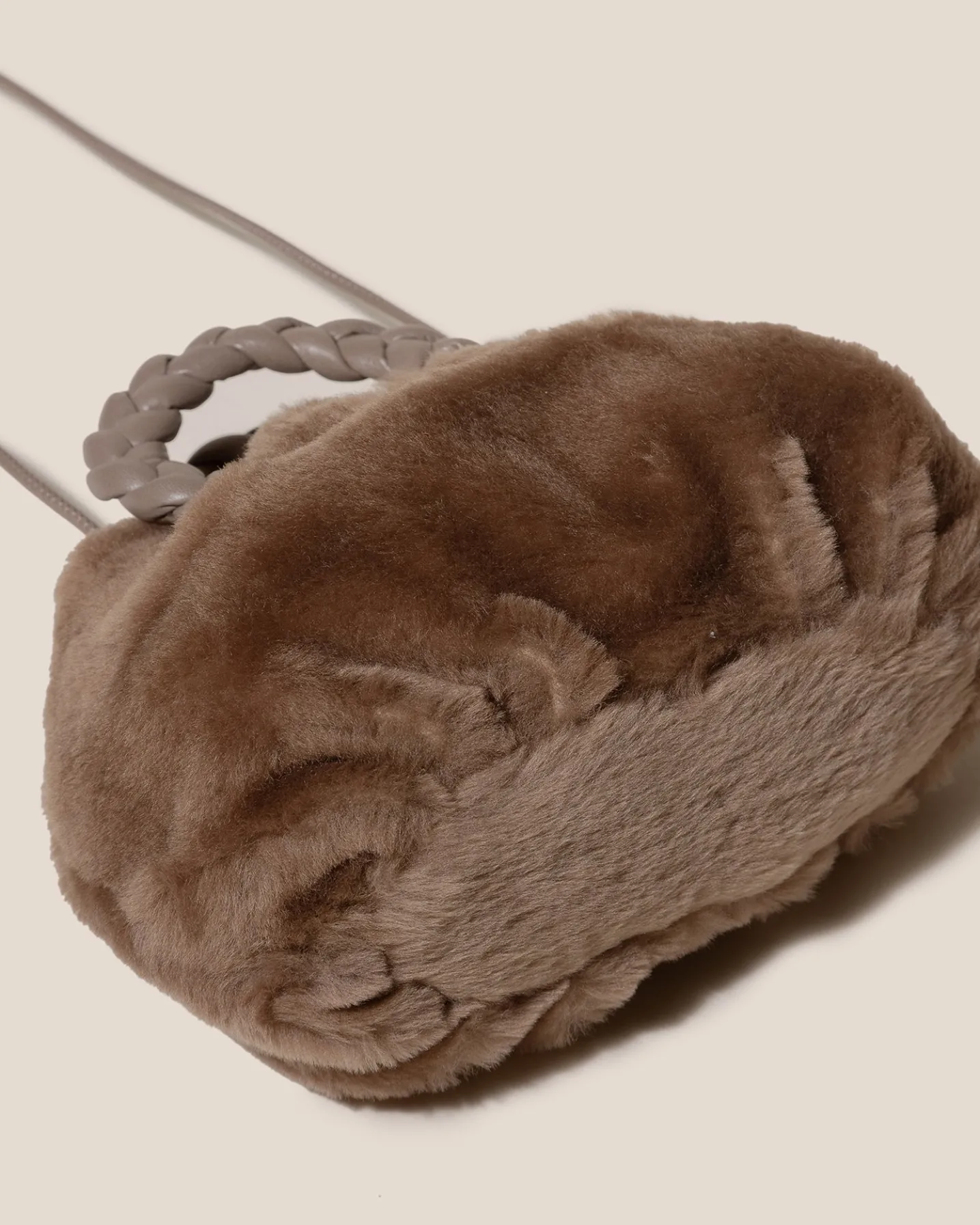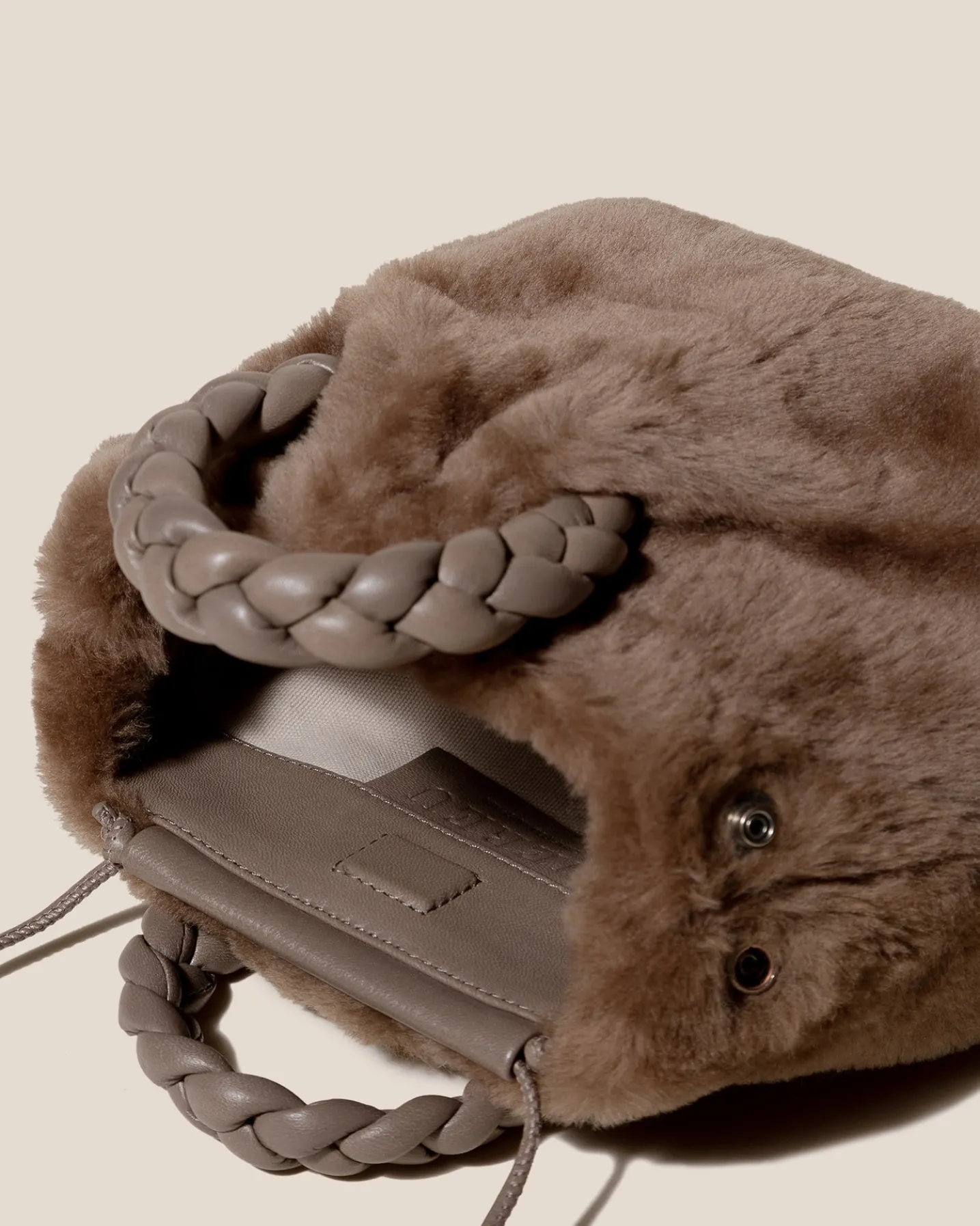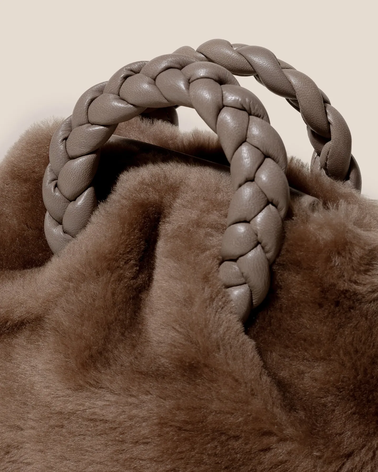 Small crossbody bag with braided leather handles, crafted in shearling sheepskin and supple lambskin.