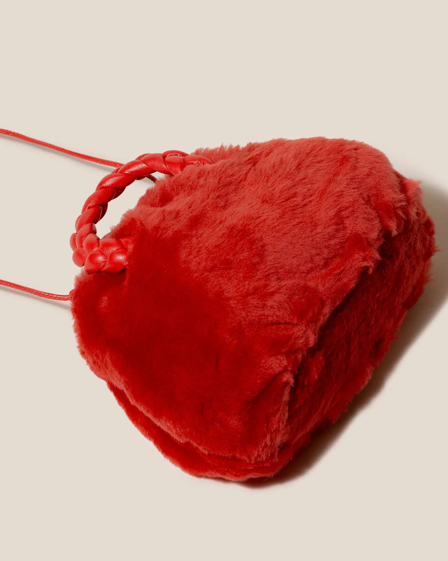 Small crossbody bag with braided leather handles, crafted in shearling sheepskin and supple lambskin.