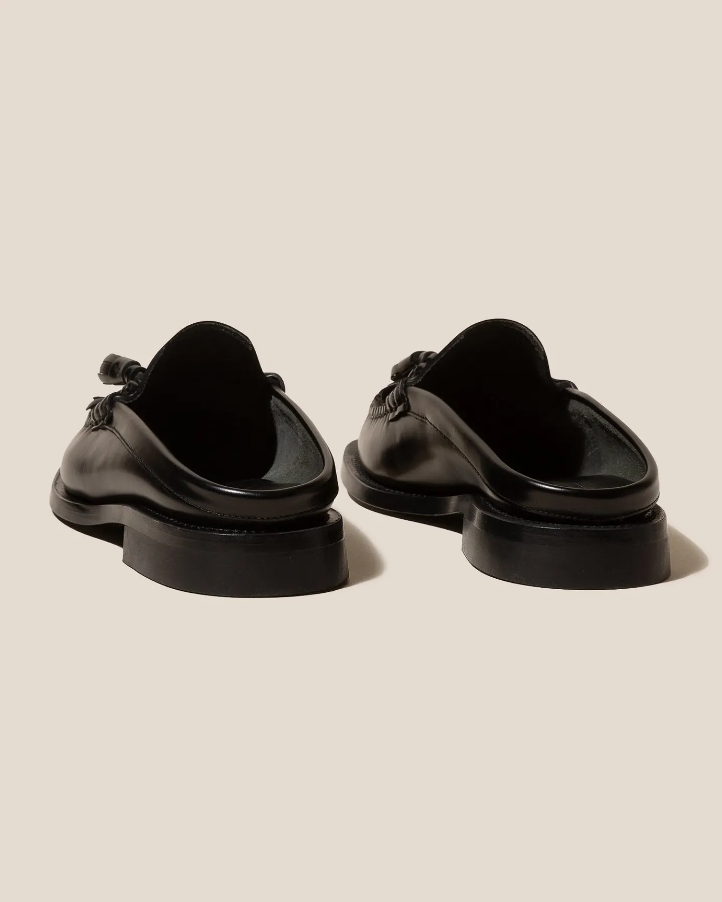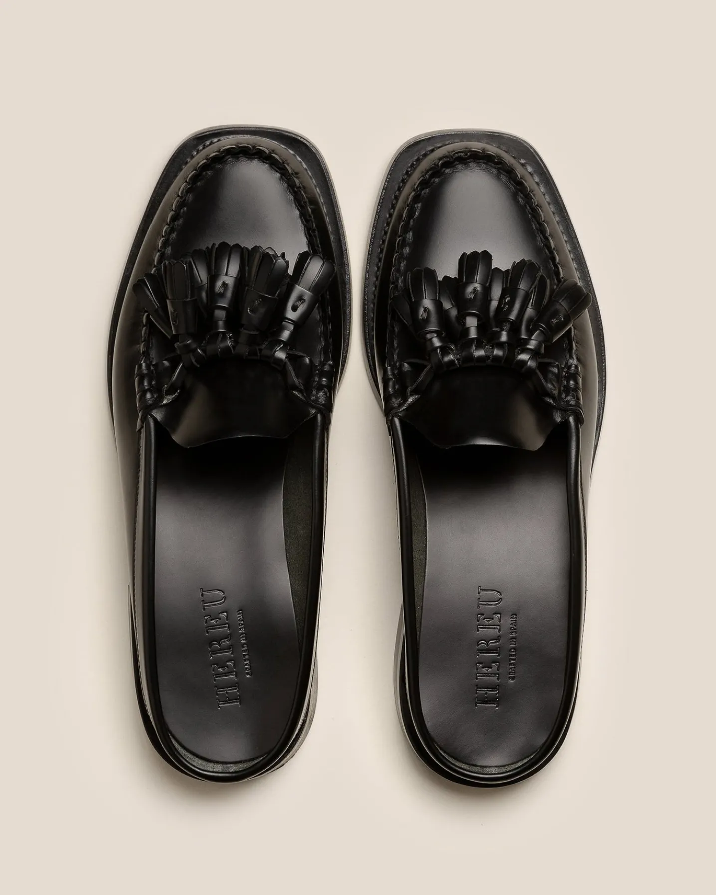 Tasseled mule loafer crafted in Spanish full grain leather. The upper has been hand sewn using the traditional moccasin construction. The outsole is stitched to the upper for extra flexibility and durability.