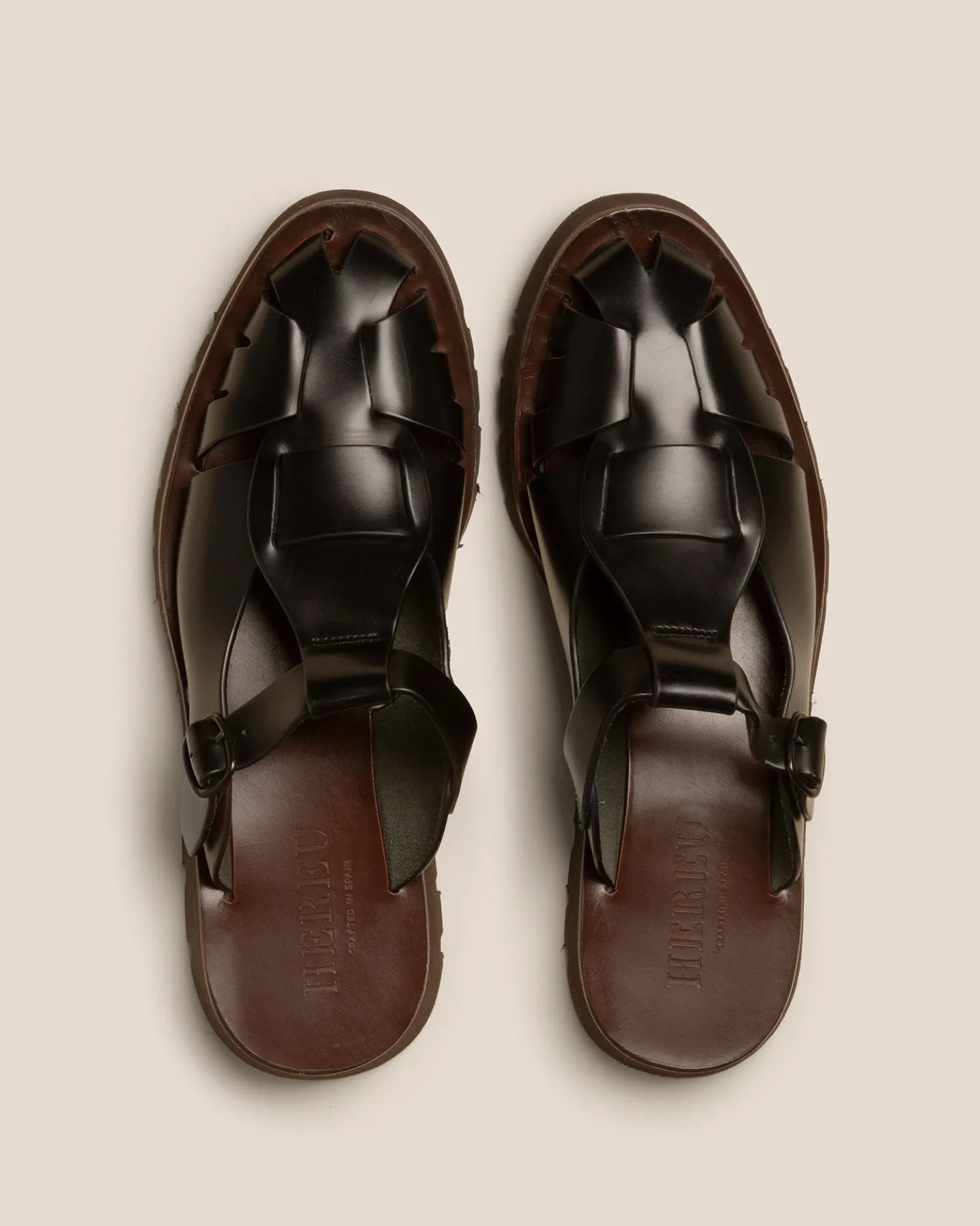 Round-toe fisherman clog crafted in full grain Italian double-faced calf leather.