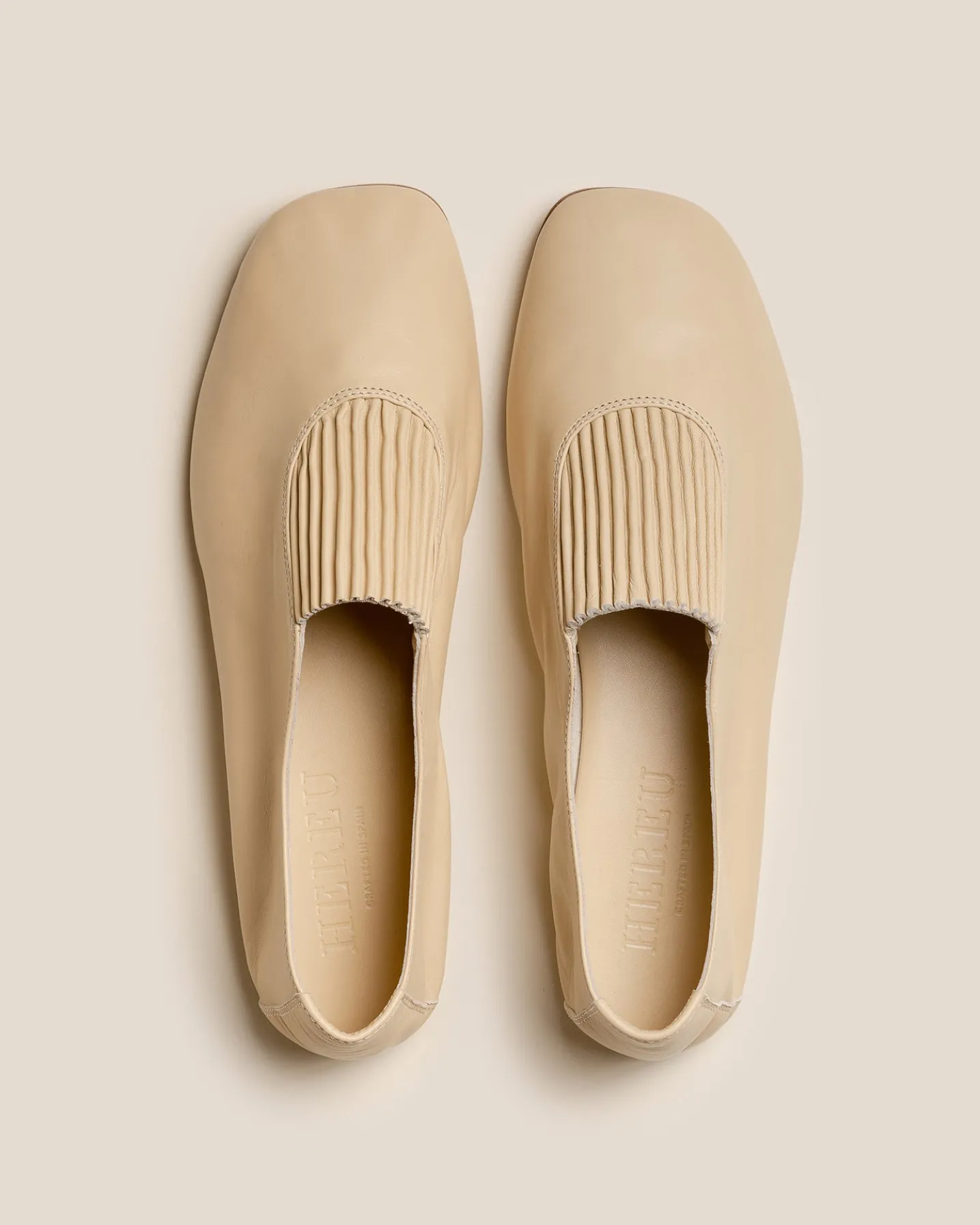 Flat elasticated pull-on shoe, crafted in unlined supple lambskin.