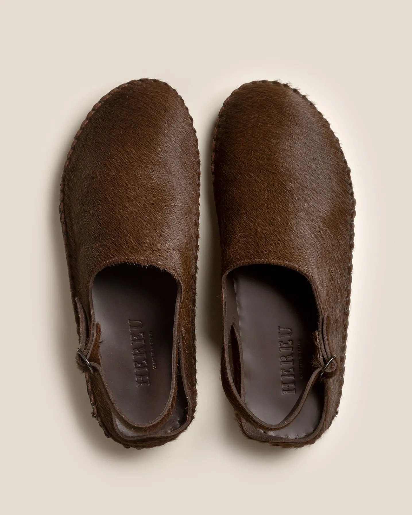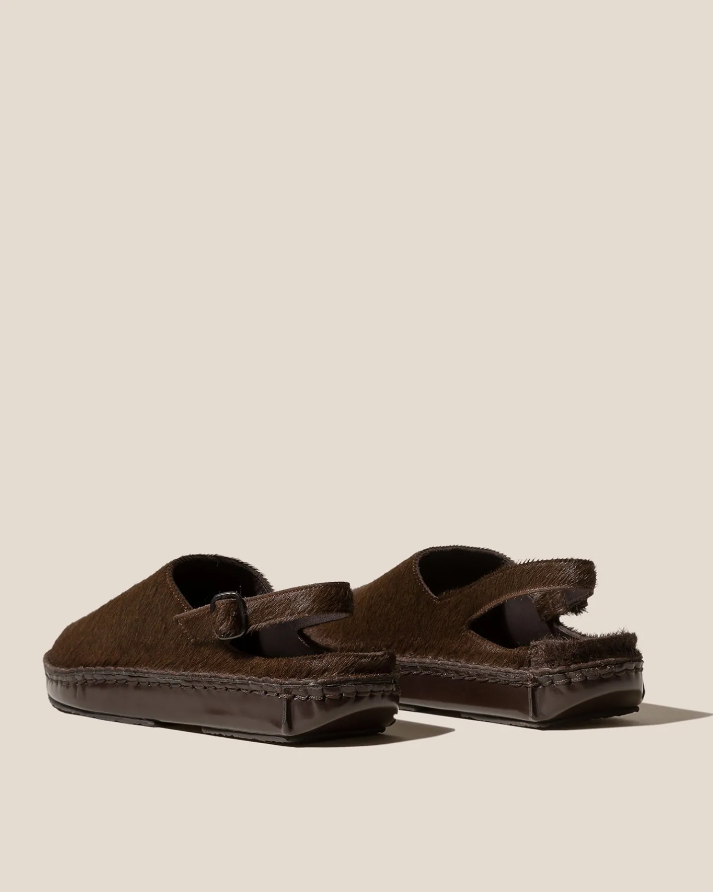 Slingback clog with whipstitch detail, crafted in calf hair and structured calf leather.