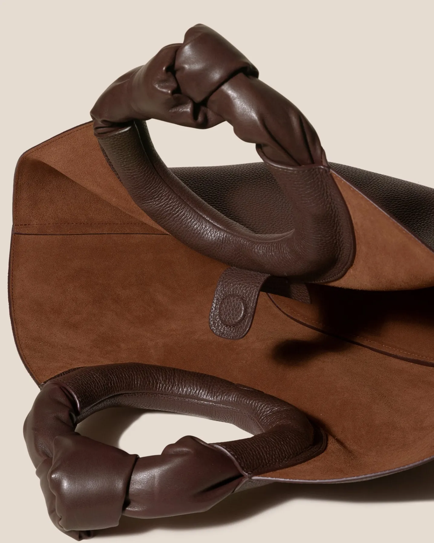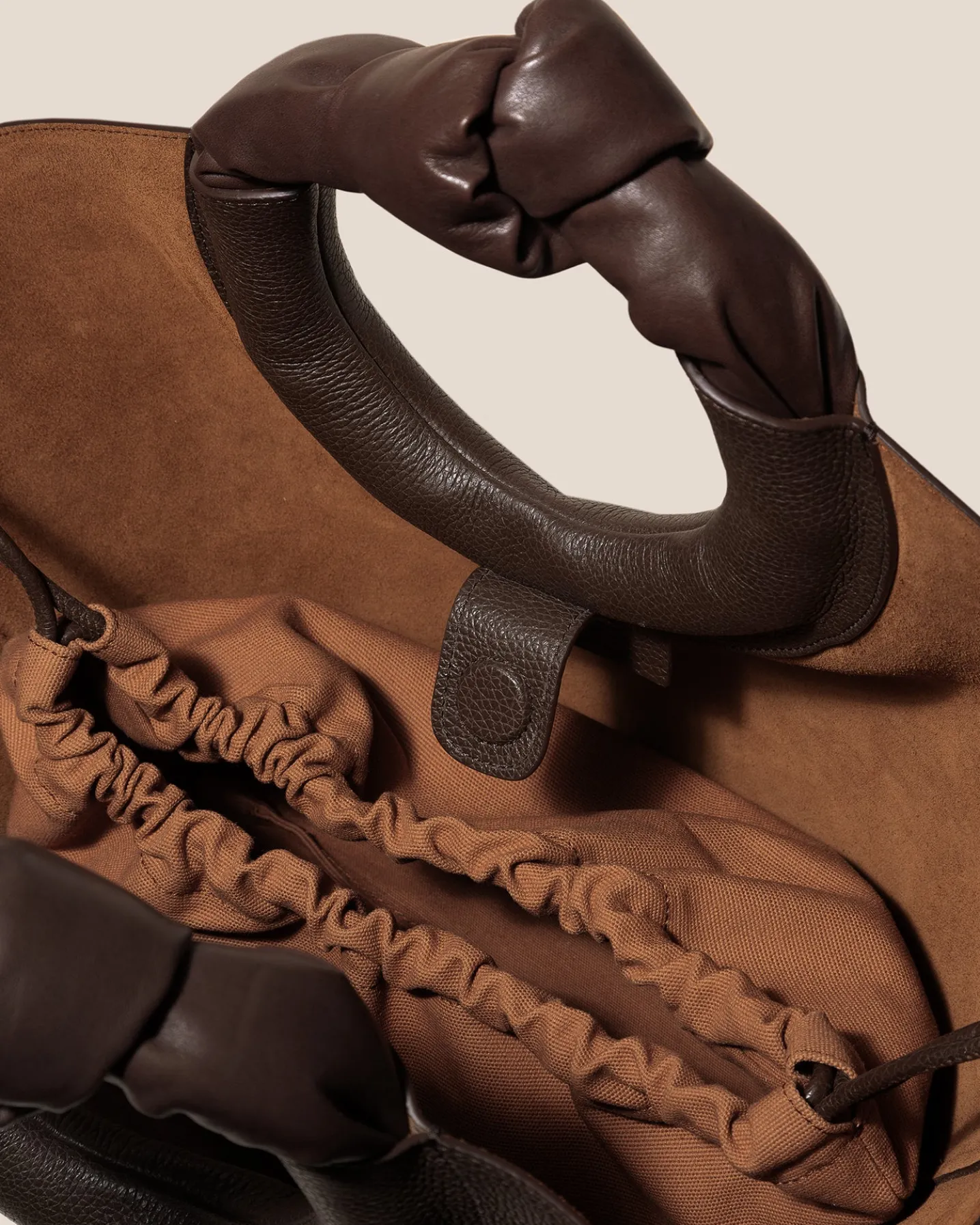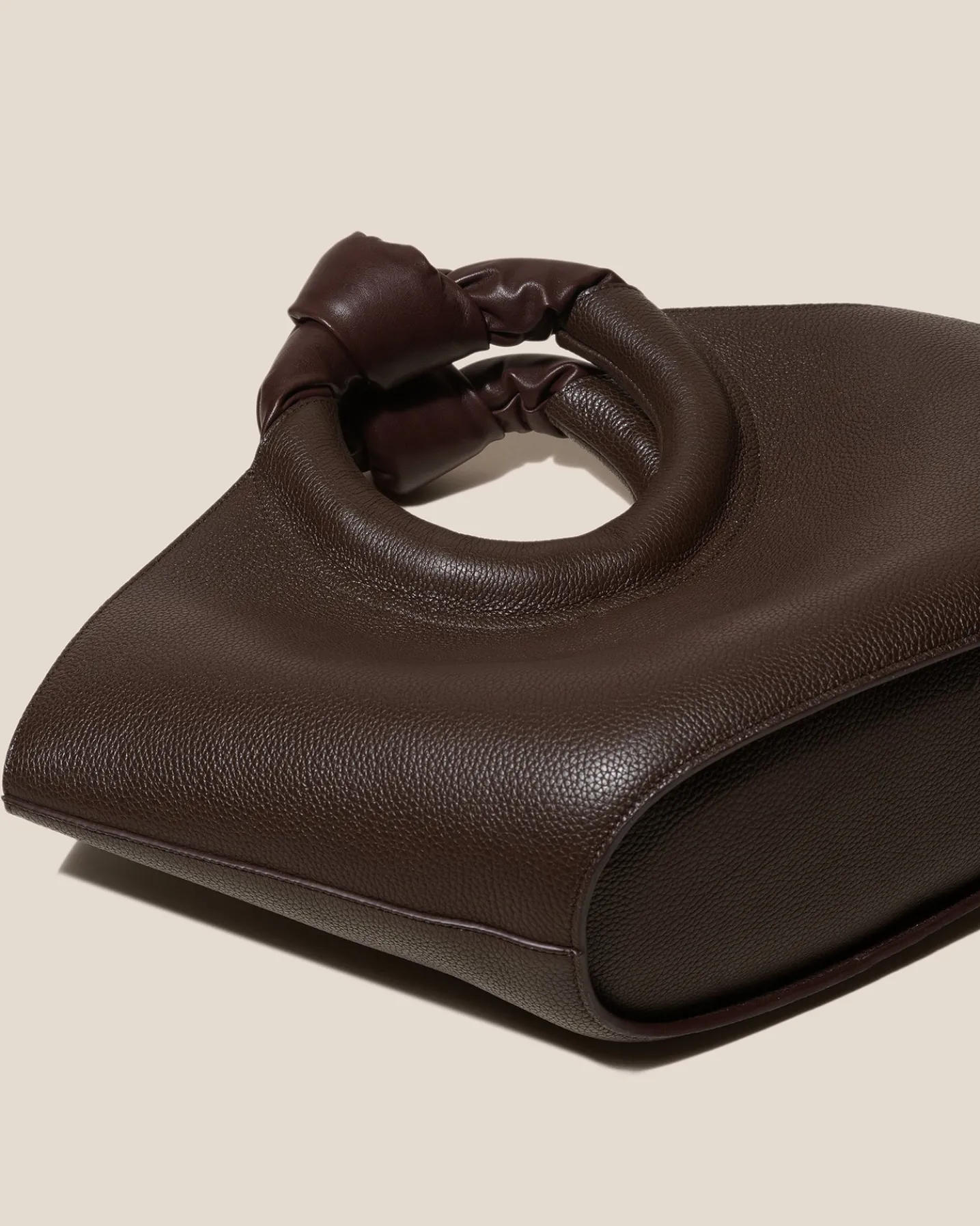 Knotted-handle basket tote crafted in Spanish grainy calf leather with calf leather lining.