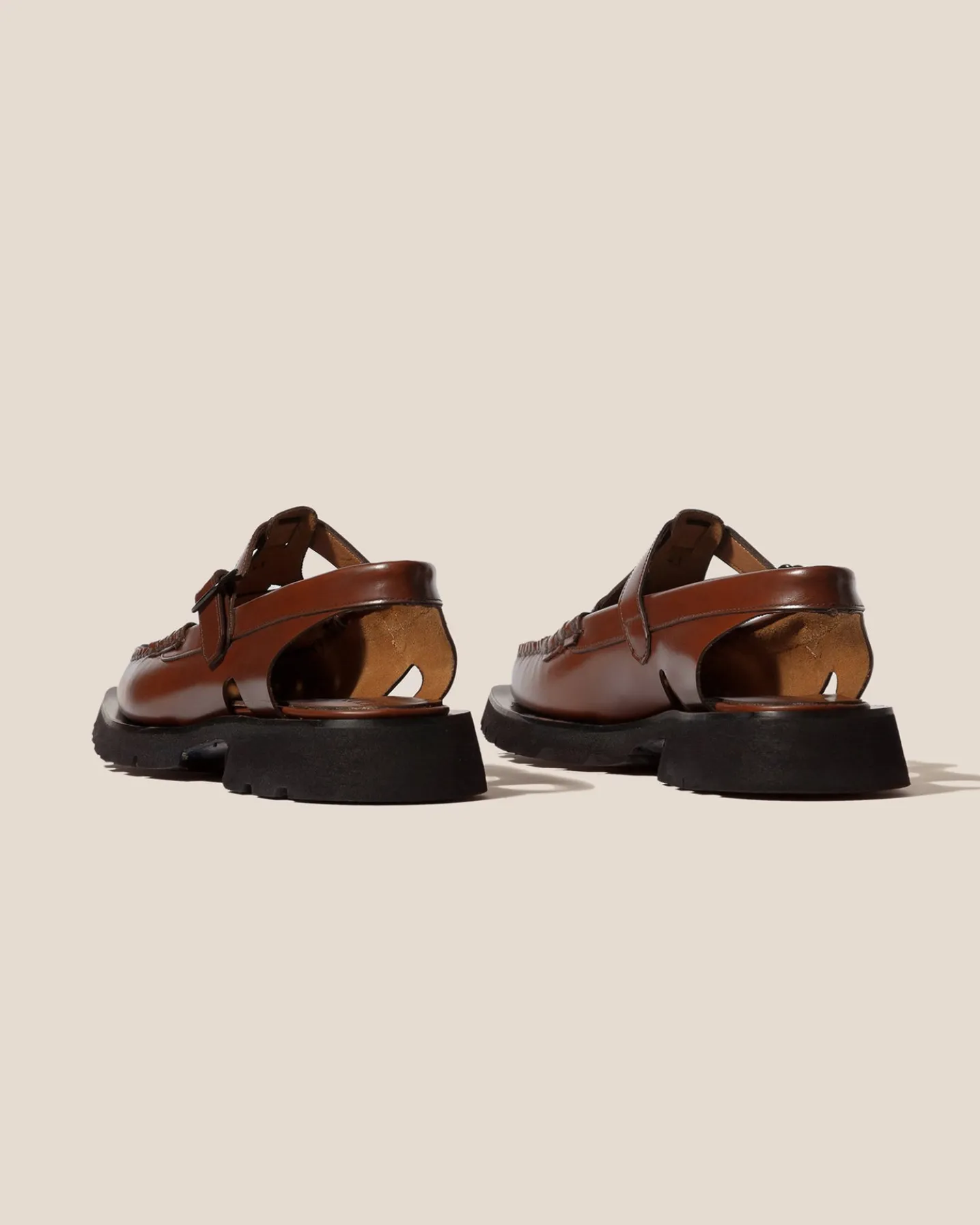 Slingback t-bar loafer with interwoven front detail, crafted in Spanish full grain calf leather. Hand-sewn using the traditional moccasin construction