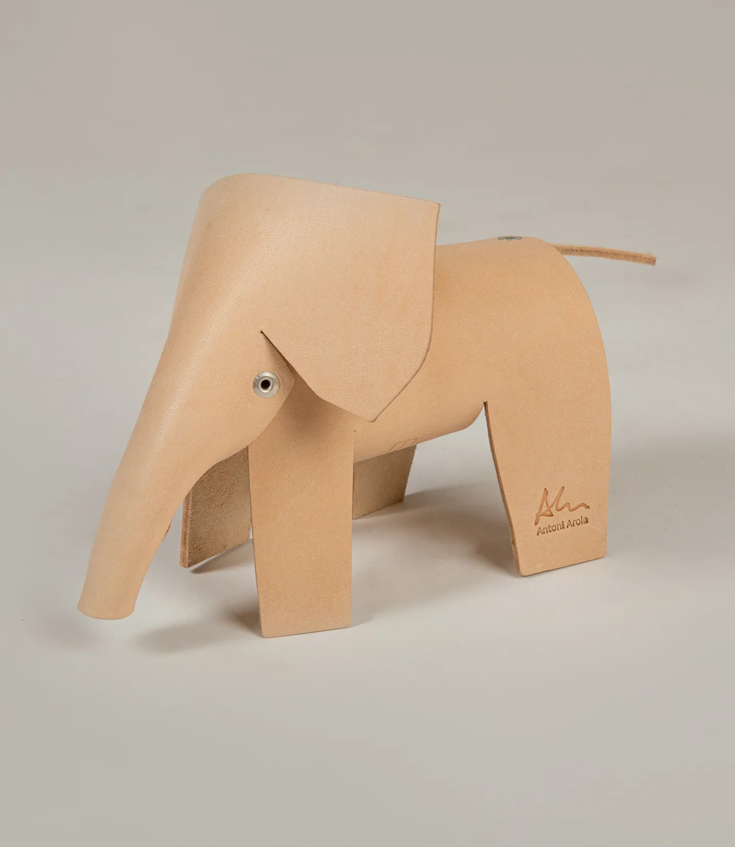 Elefanta Maria was created without previous measures or decisions. Natural untreated leather, scissors and rivets.