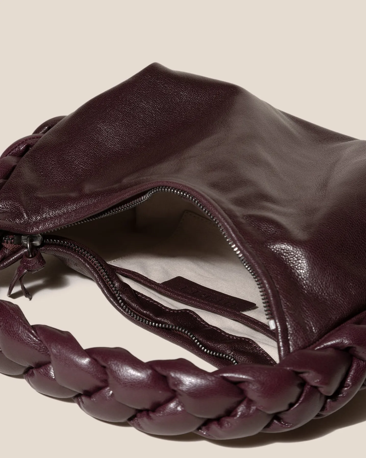 Ultra-soft shoulder bag with plaited padded detail, crafted in supple shiny lambskin.