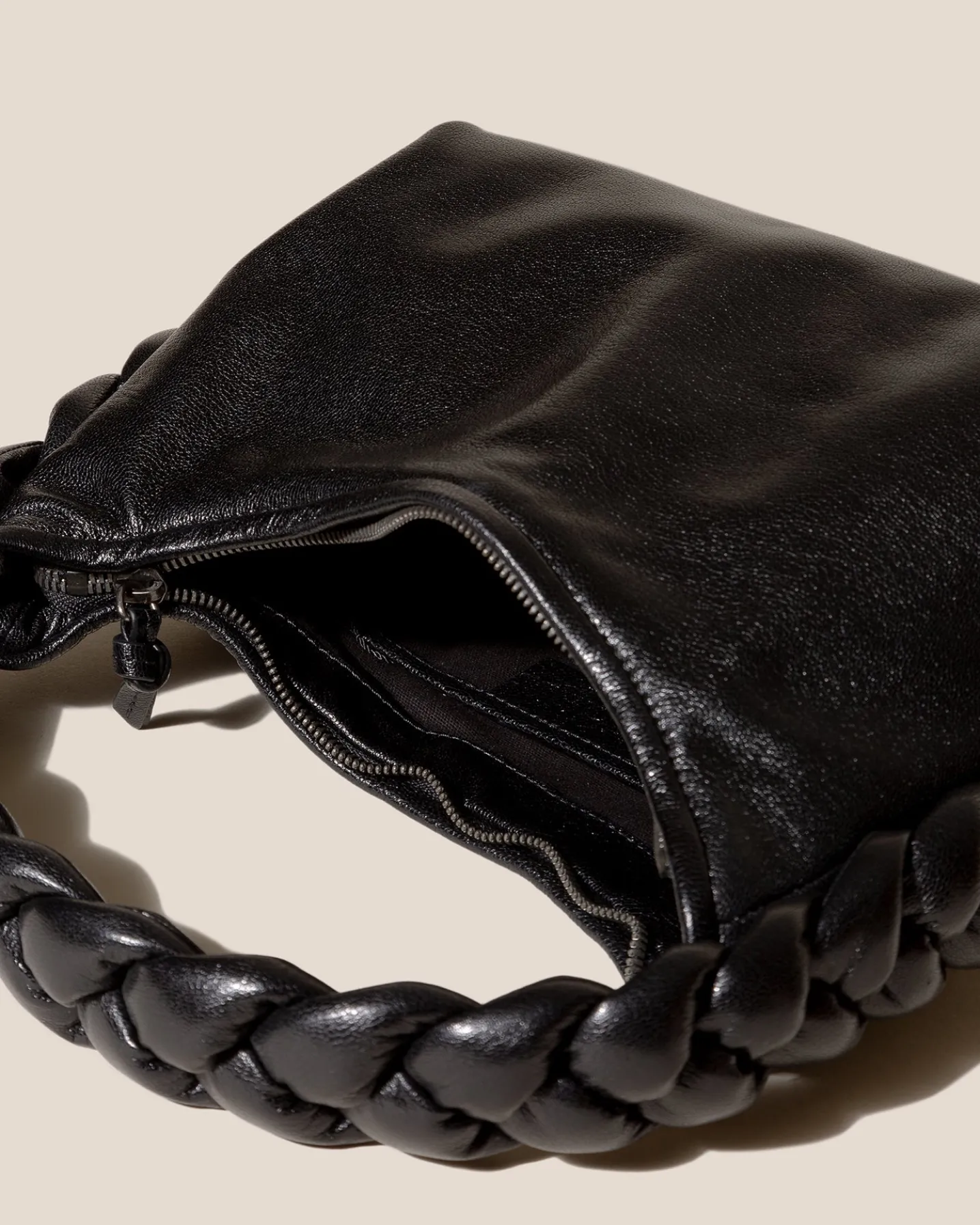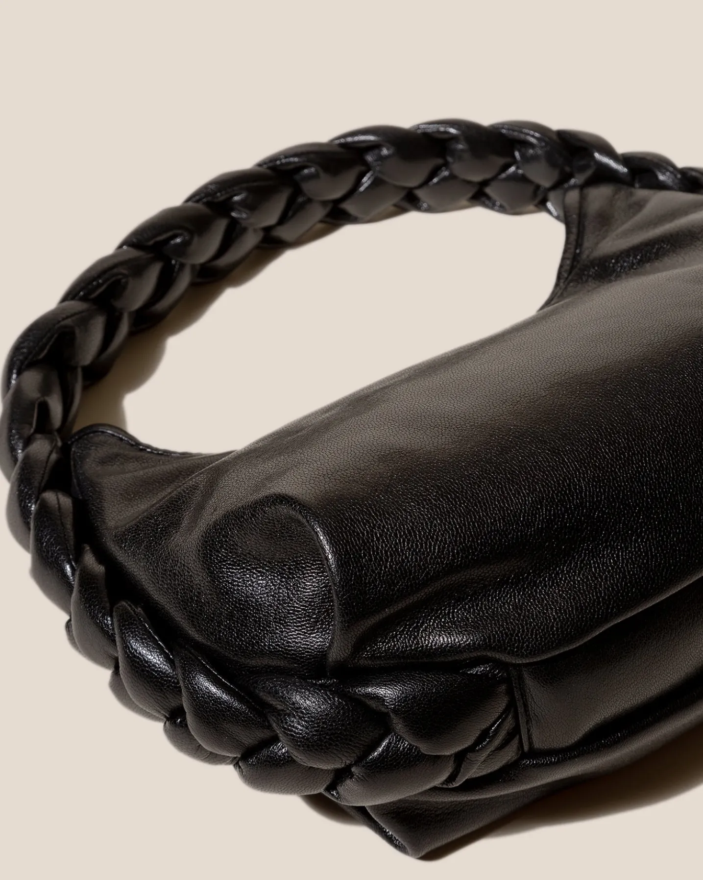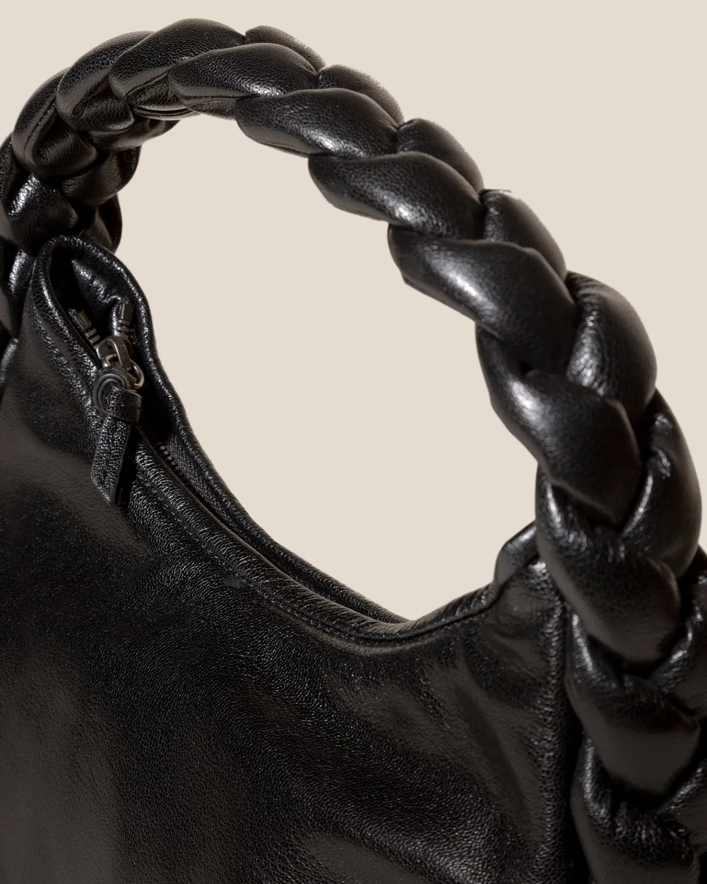 Ultra-soft shoulder bag with plaited padded detail, crafted in supple shiny lambskin.