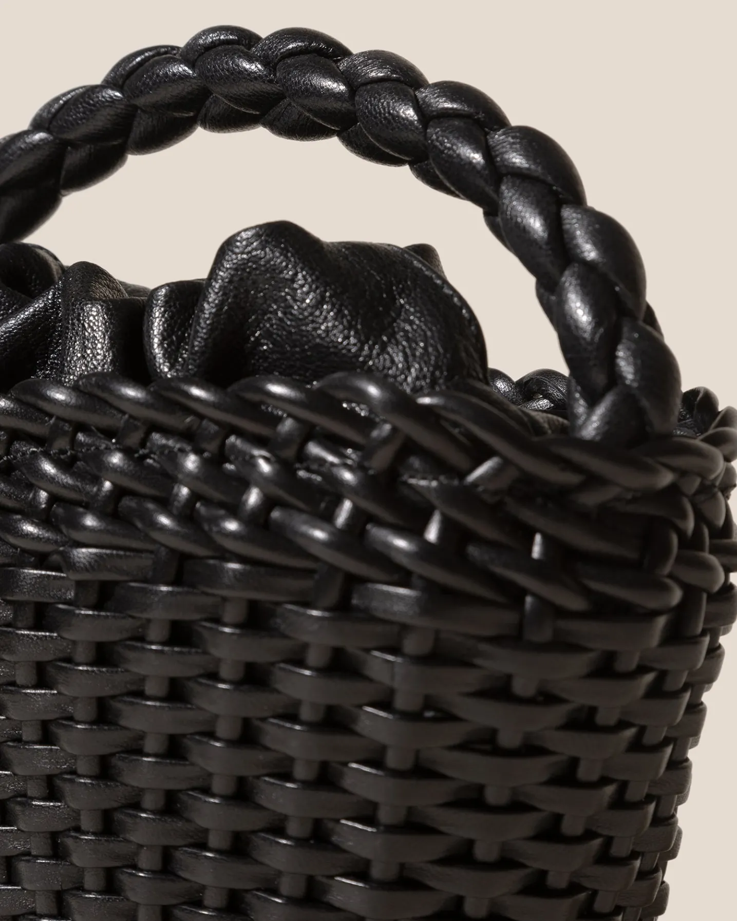 Hand-braided mini tote bag crafted in supple shiny lambskin.