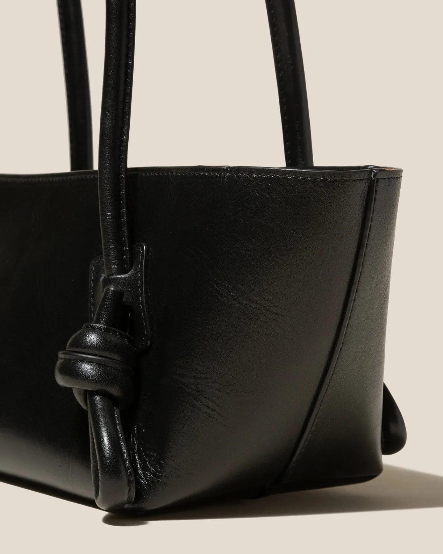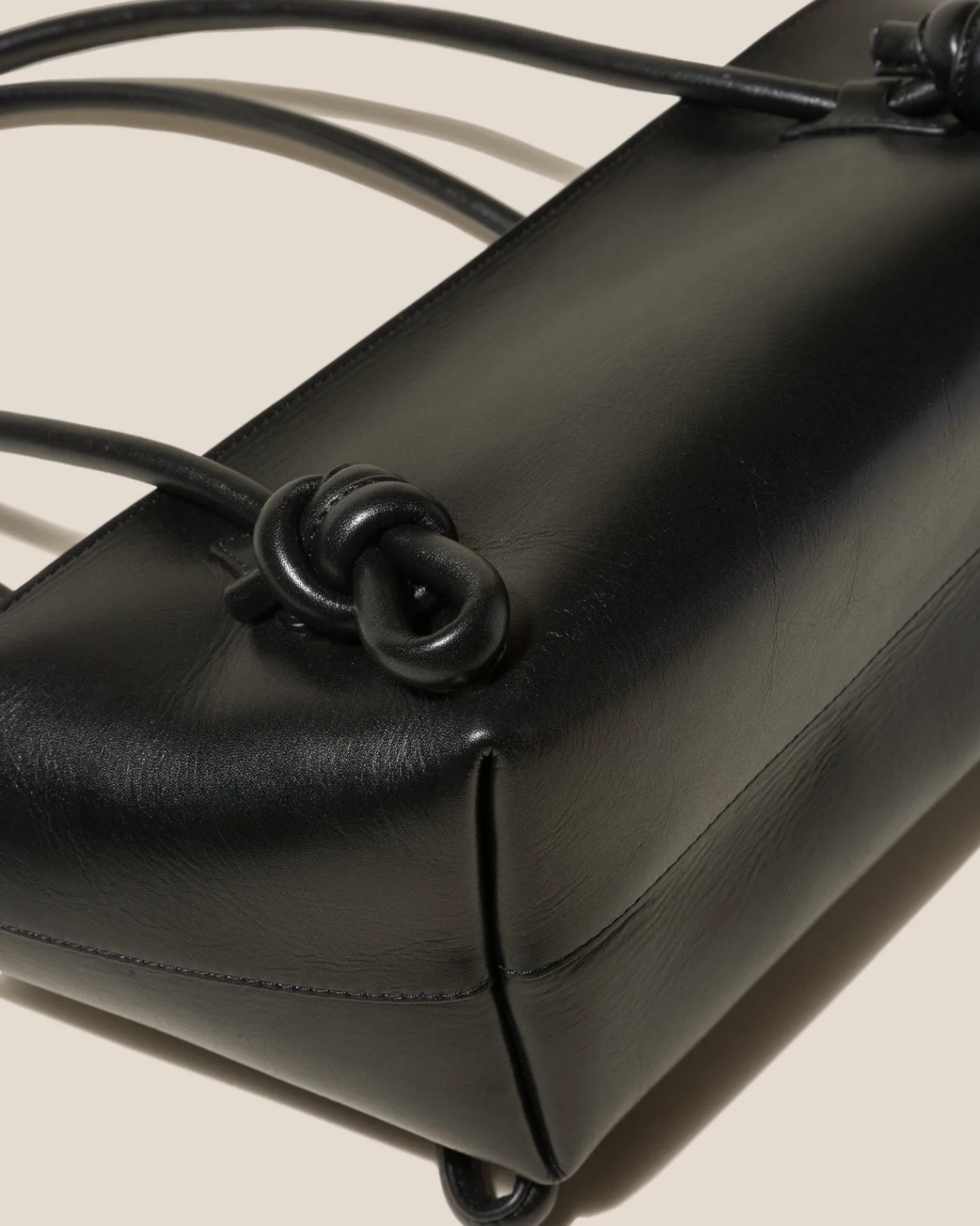 Baguette shoulder bag with knotted handle detail, crafted in polished Italian calf leather and lined with calf suede.