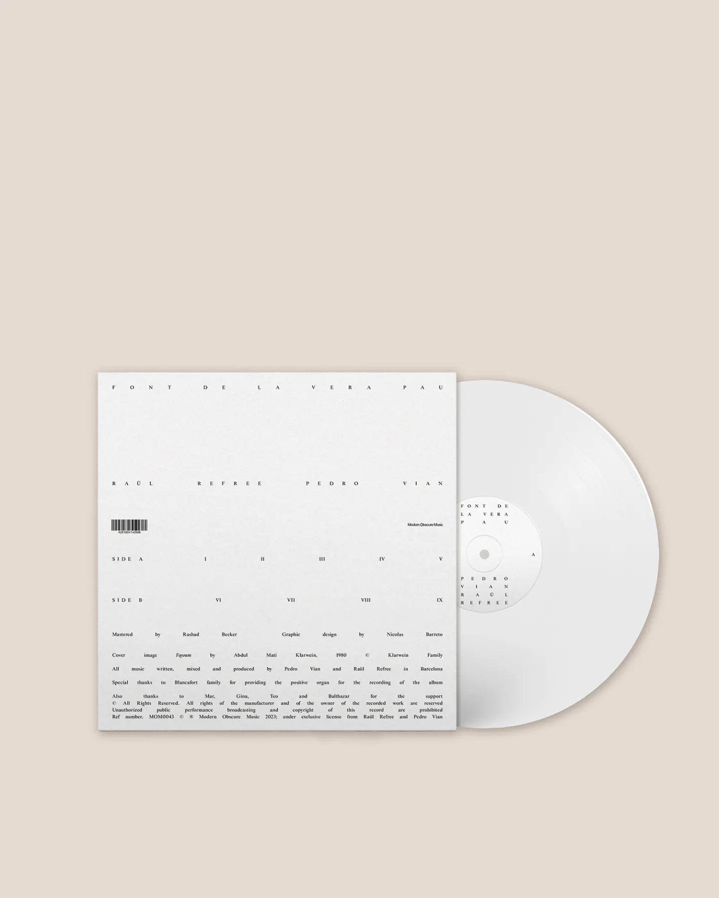 Raül Refree & Pedro Vian are two of the most acclaimed and versatile Spanish producers and artists of the last decade. The two creative minds from the Barcelona avant-garde music scene have just released their collaborative debut album “Font de la Vera Pau”, a boundary-pushing release that oozes artistic vision and creative genius. The album, simmered slowly and in complete complicity, showcases a strong musical connection interwoven in each of its nine compositions.