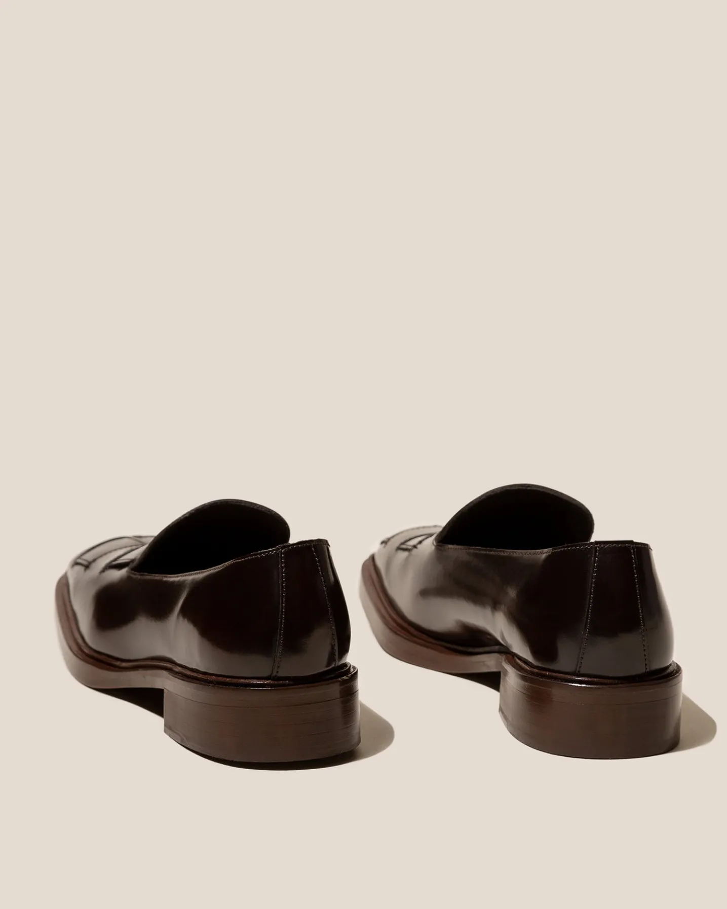 Interwoven slip-on shoe crafted in polished structured calf leather.