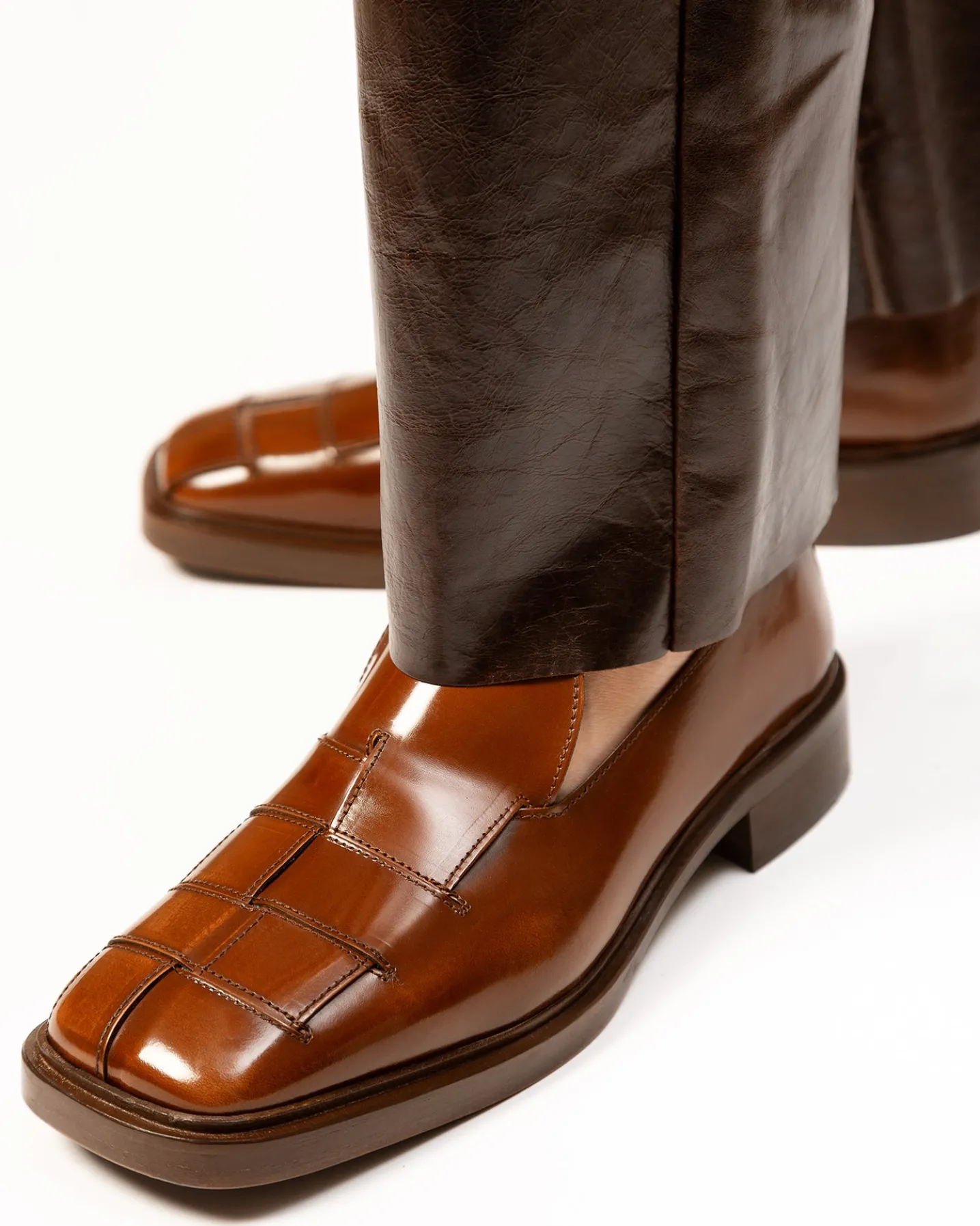 Interwoven slip-on shoe crafted in polished structured calf leather.