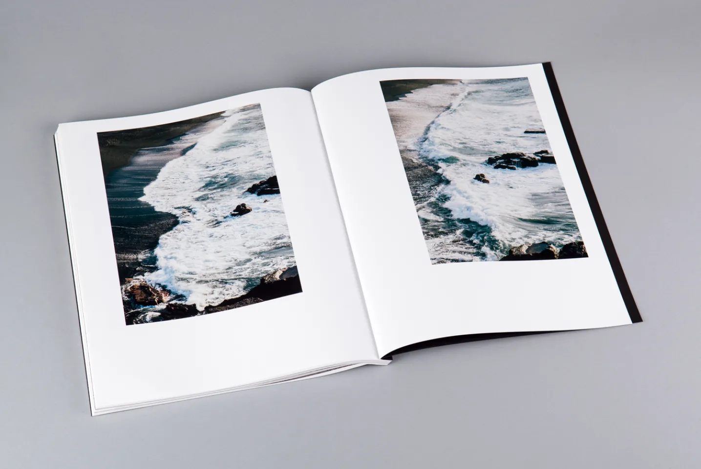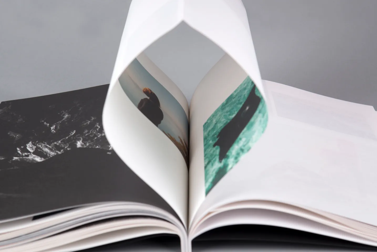 To find the right form for this dialogue between colour and black and white images, Salva turned to the young designer Eloi Gimeno. Eloi had the brilliant idea of taking advantage of the uncut folds of the binding to trap the images of the woman and leave the landscapes in view, turning the book’s own format into a metaphor for the memory and coexistence of images of the past and the present.
