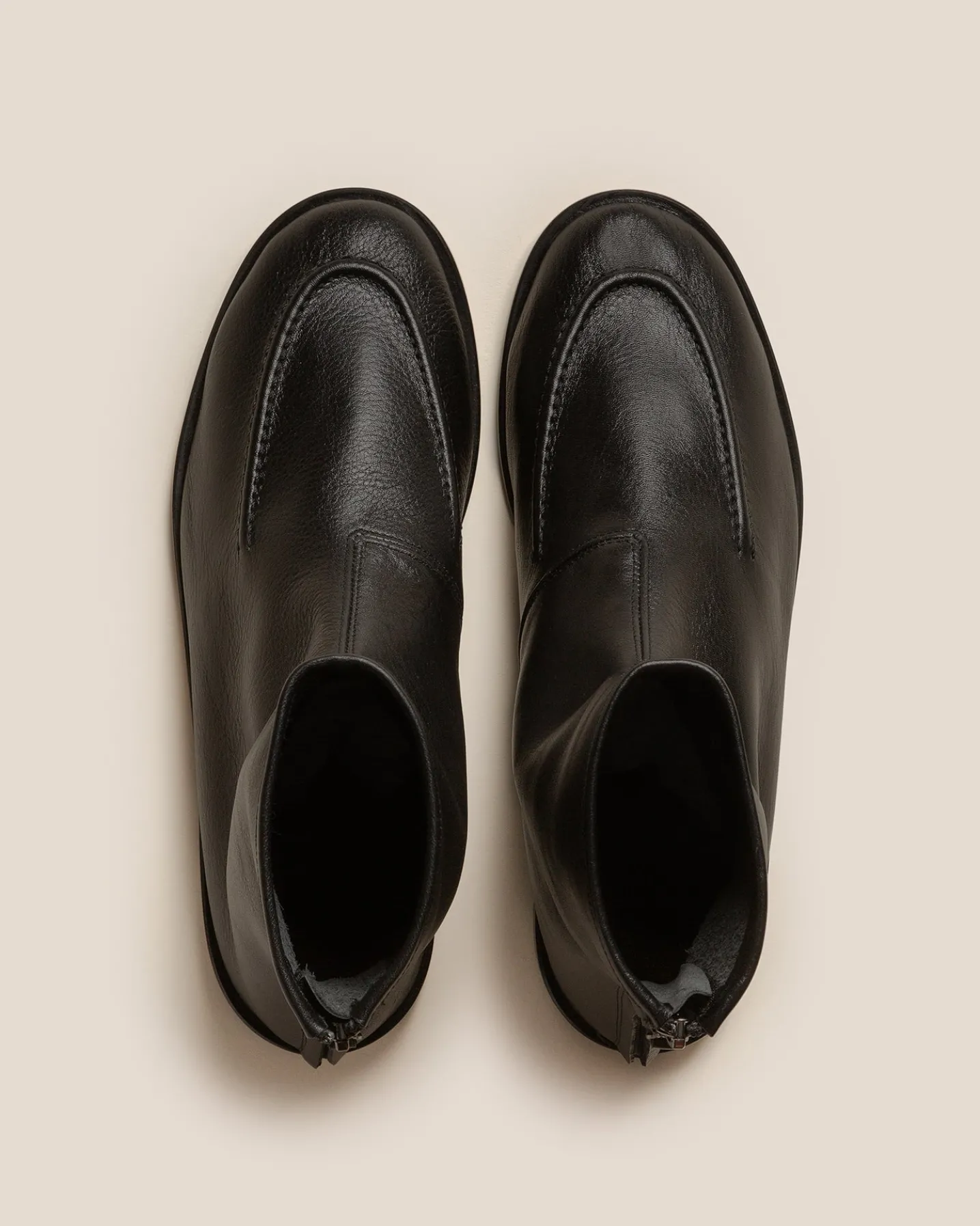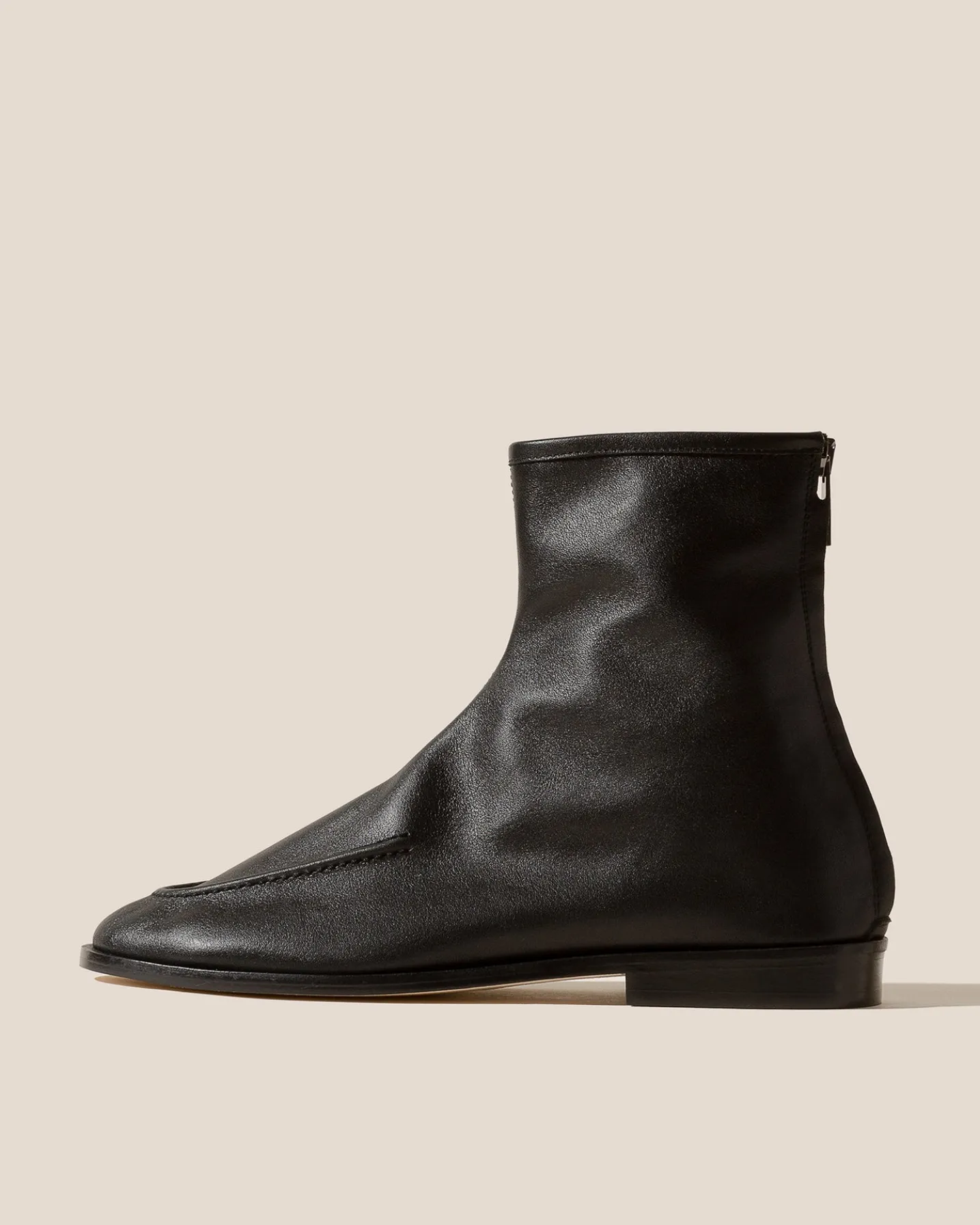 Soft ankle boot with front seam detail, crafted in shiny soft calf leather.