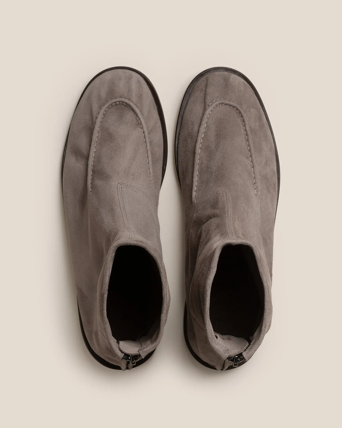 Soft ankle boot with front seam detail, crafted in goat suede.