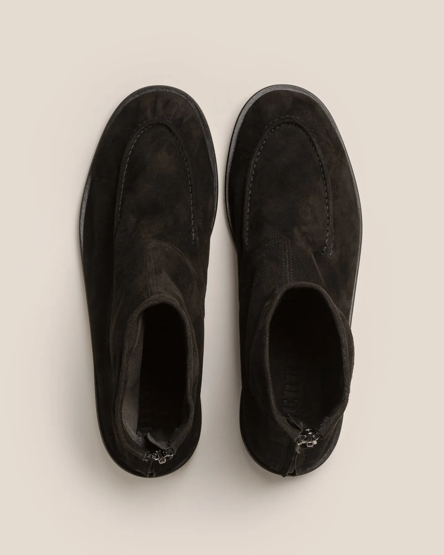 Soft ankle boot with front seam detail, crafted in goat suede.