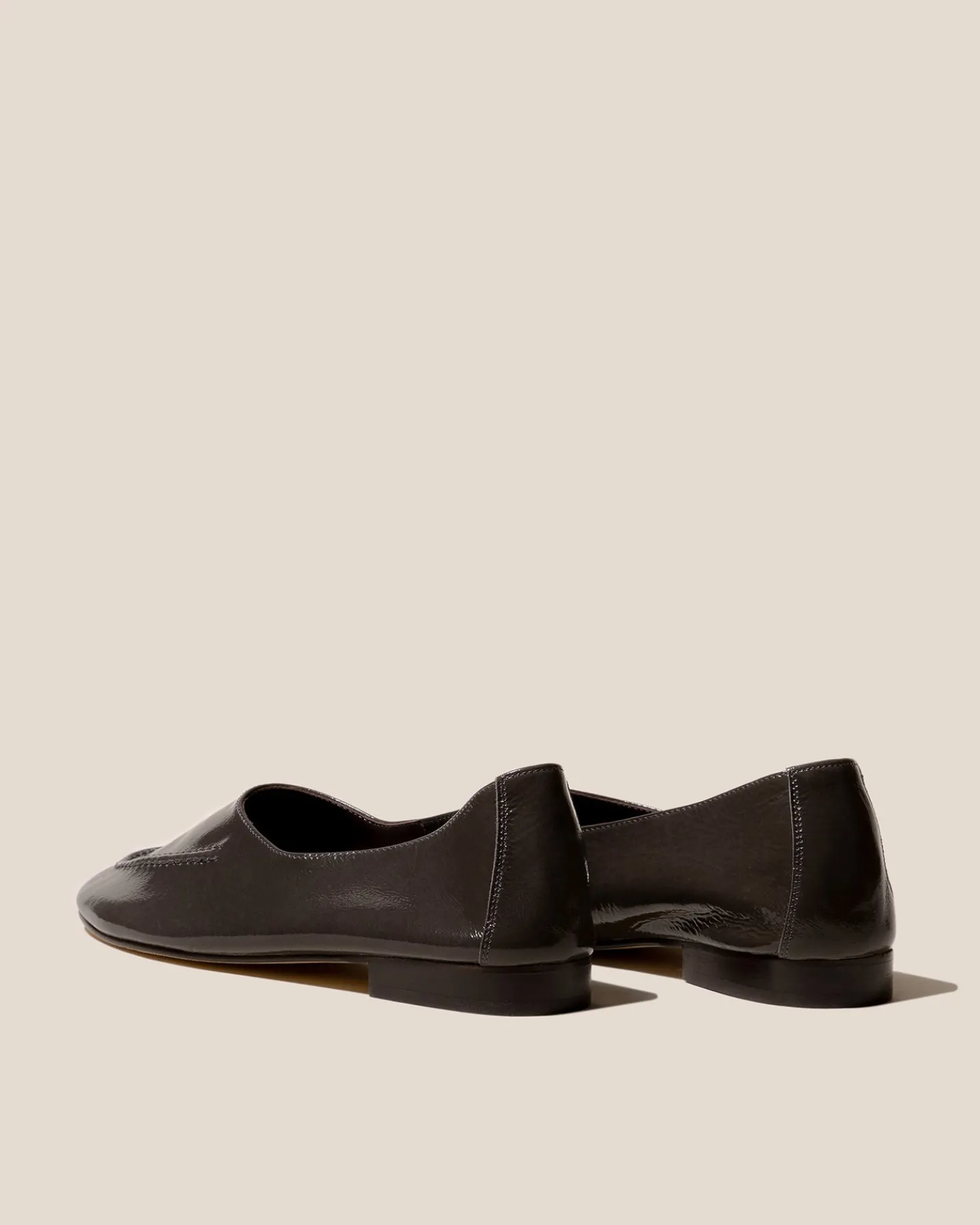 High cut deconstructed loafer crafted in crinkled glossylambskin.