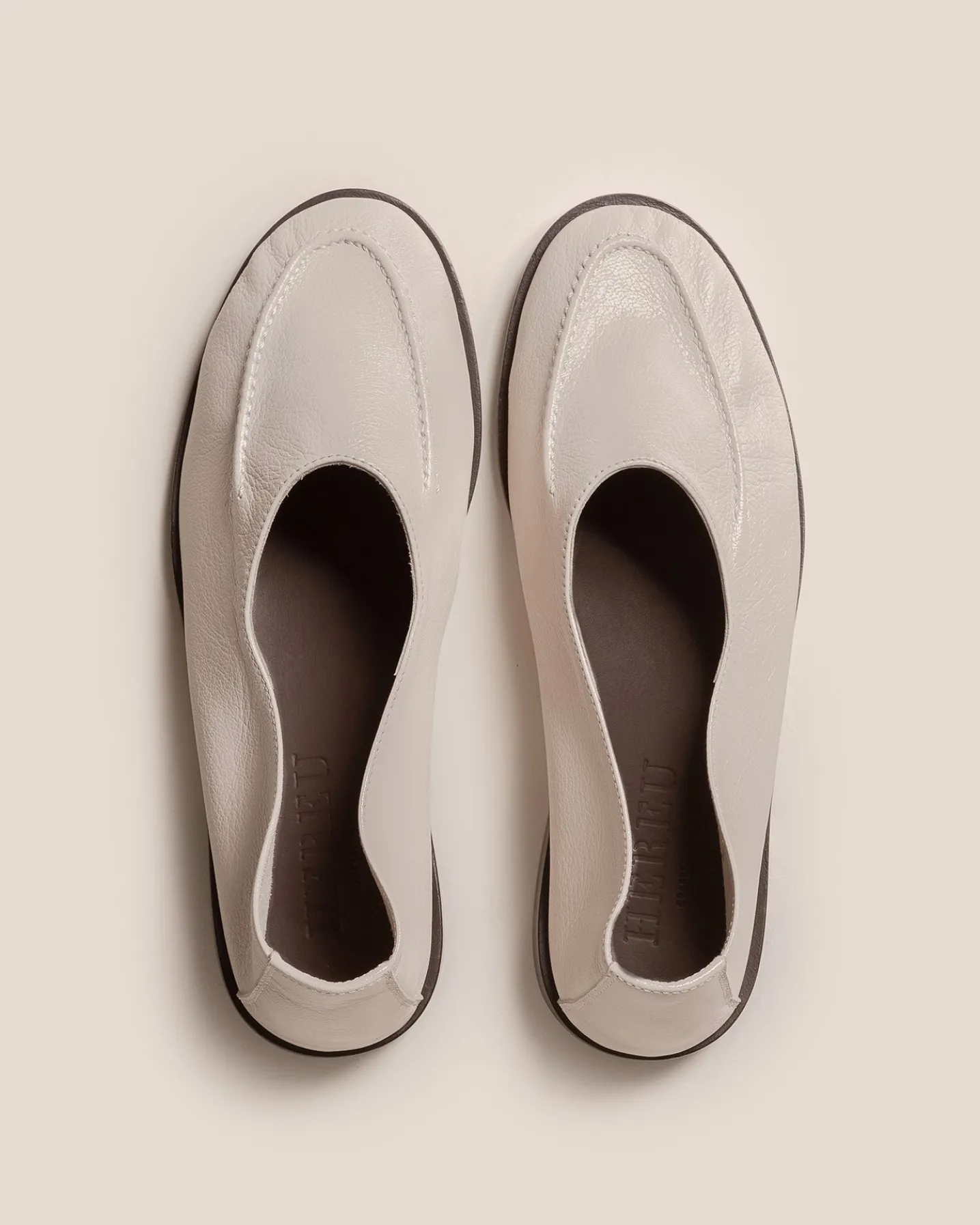 High cut deconstructed loafer with thick sole, crafted in supple shiny lambskin.