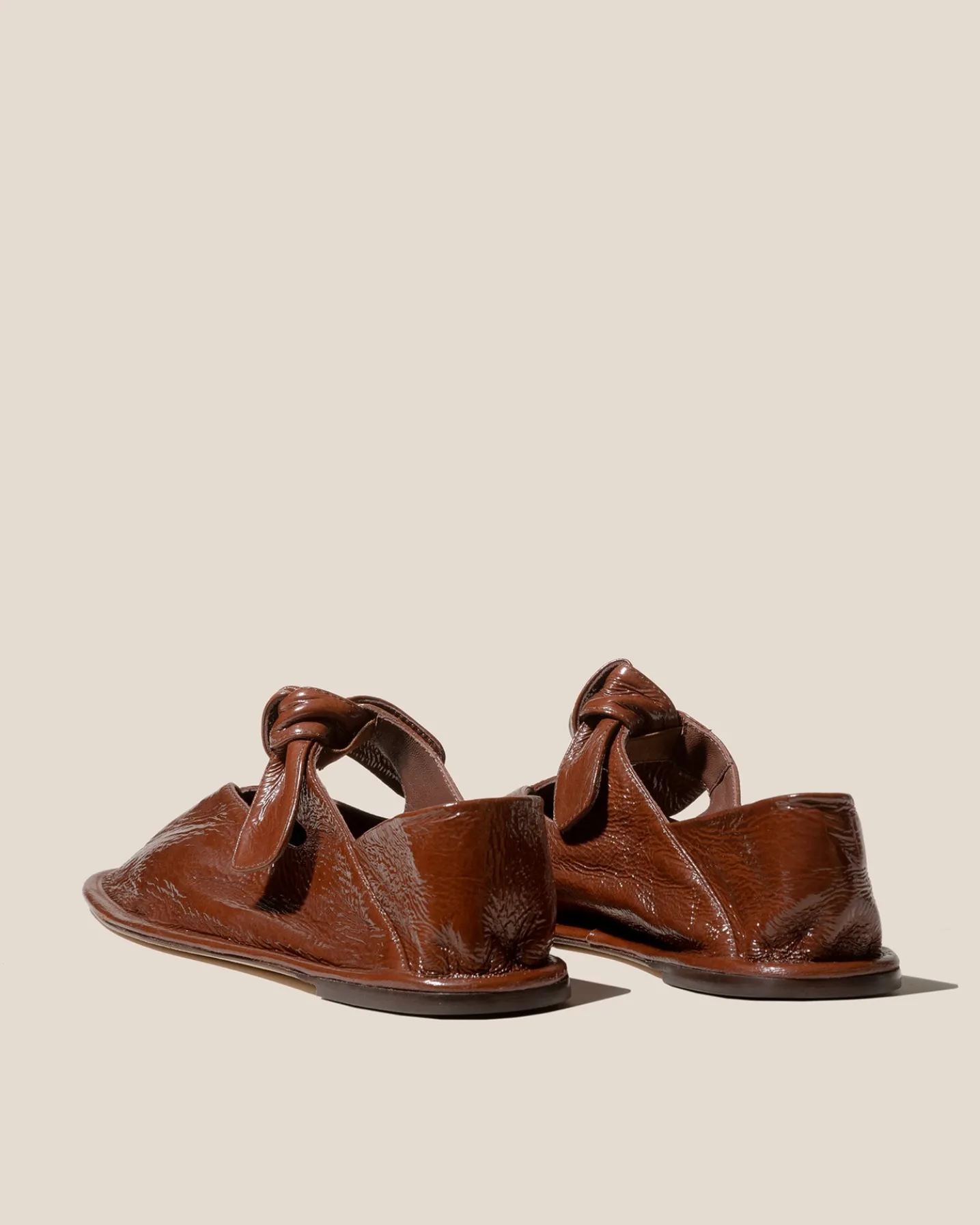 Square toe pump with bow detail, crafted in crinkled glossy lambskin.