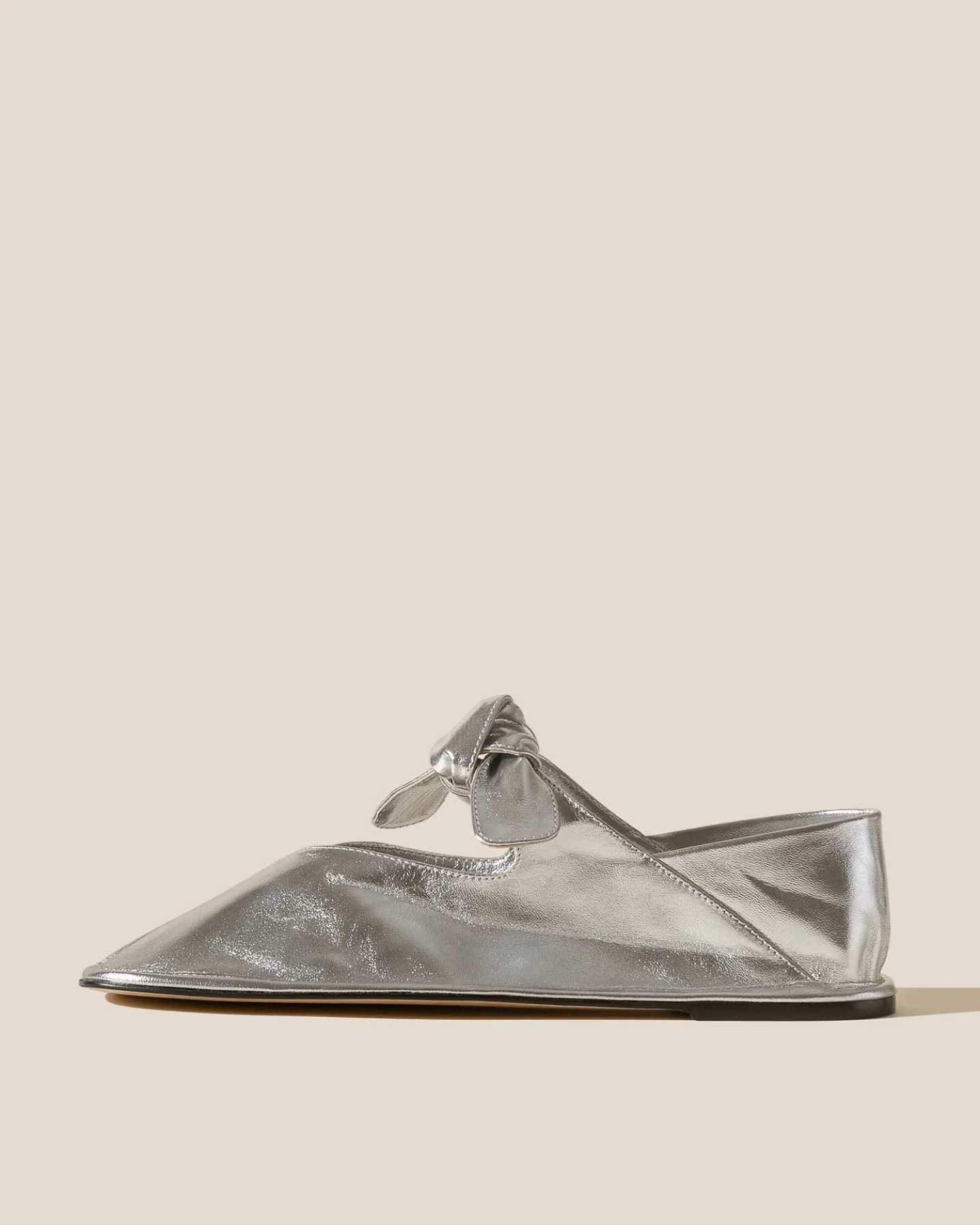 Square toe pump with bow detail, crafted in ultrasoft lambskin.