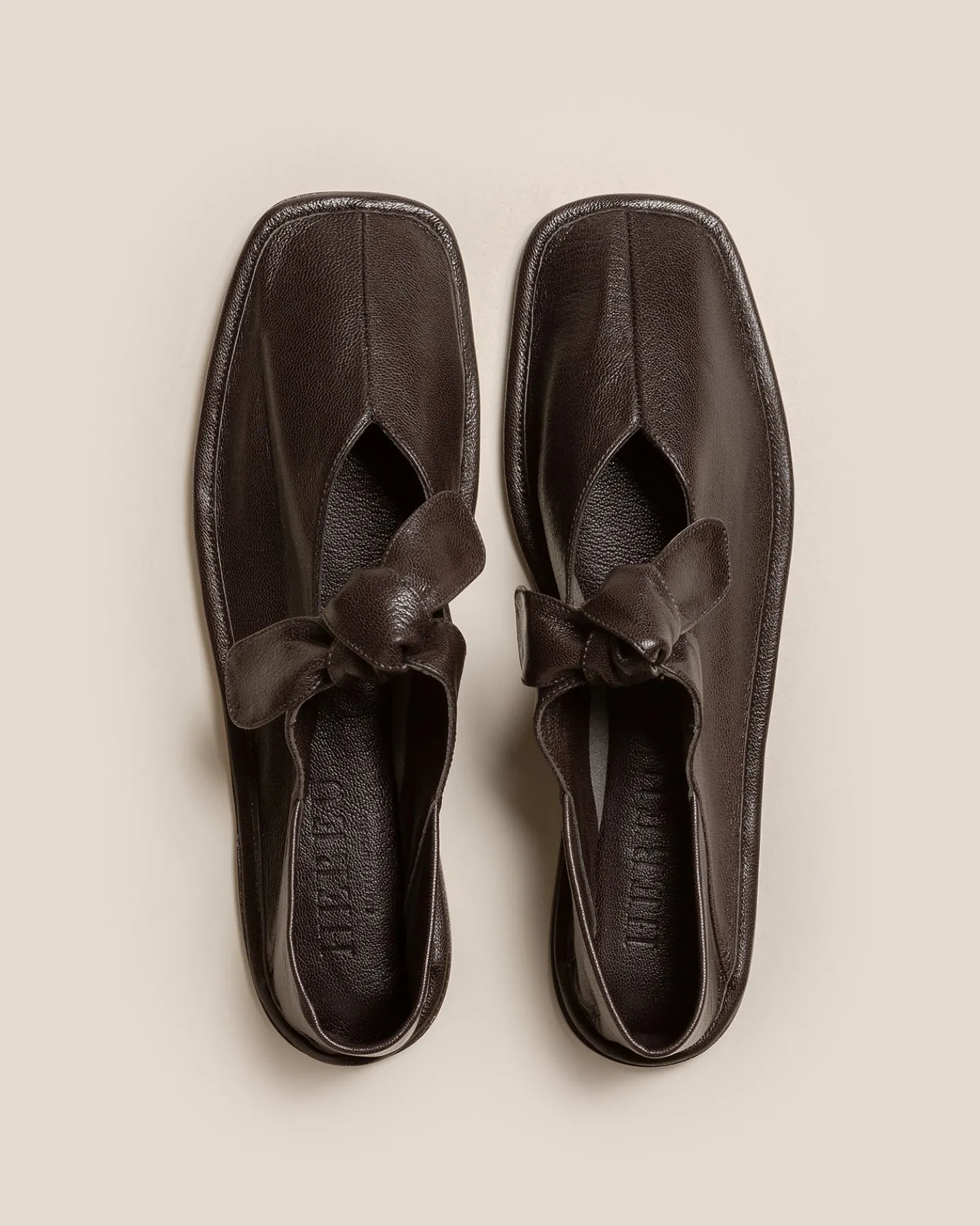 Square toe pump with bow detail, crafted in supple lambskin.