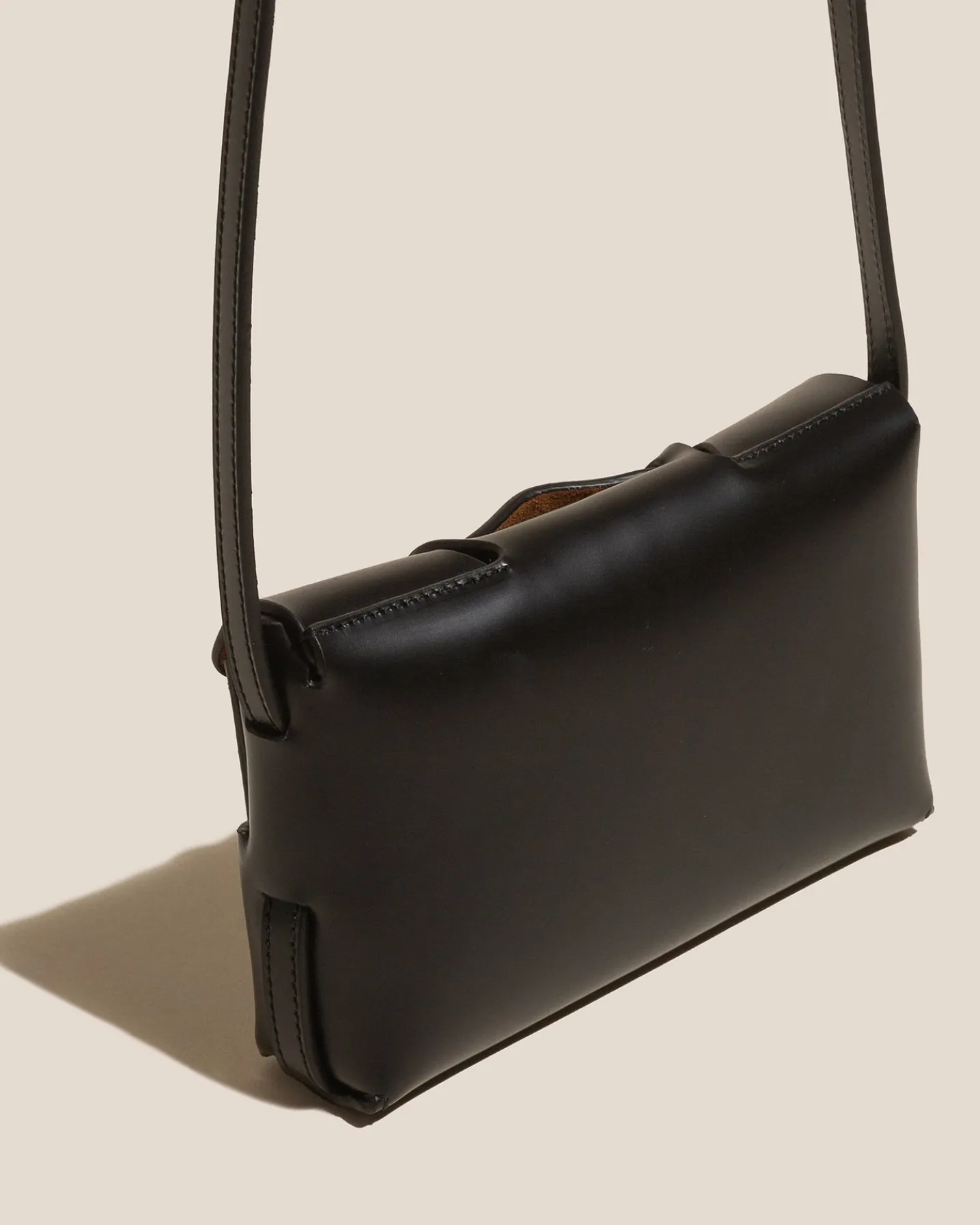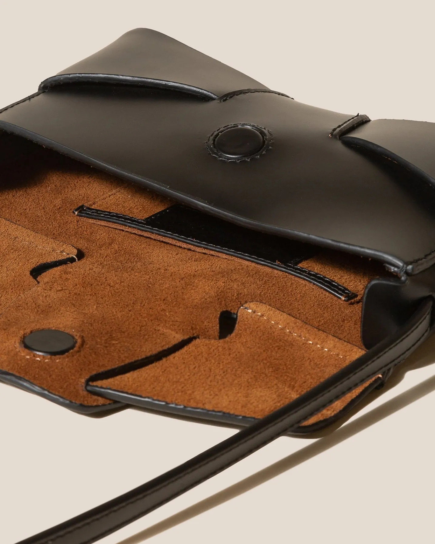 Mini crossbody bag with woven detail in Spanish structured calf leather and lined in calf suede.