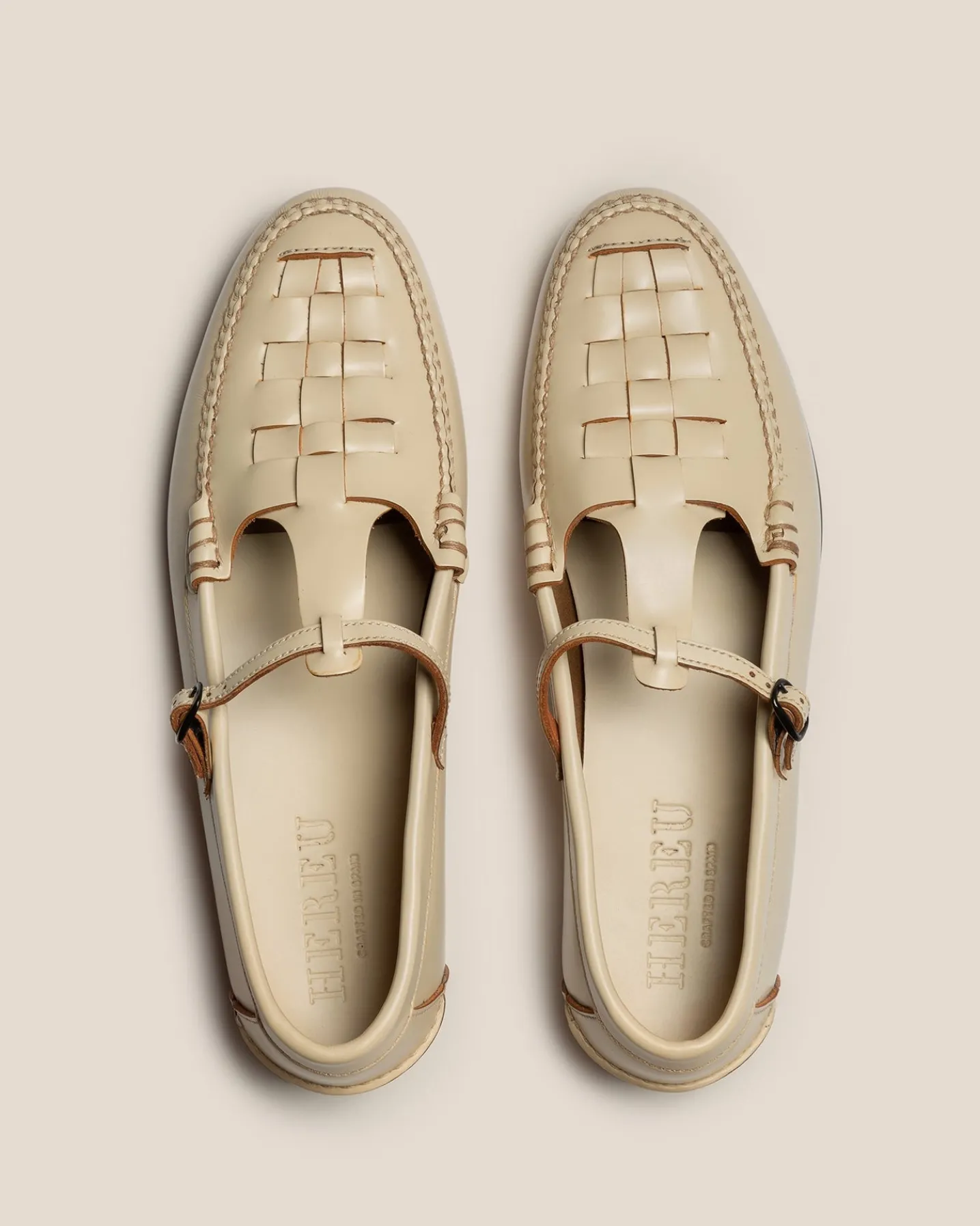T-bar loafer with interwoven front detail, crafted in Spanish black full-grain calf leather. The upper has been hand-sewn using the traditional moccasin construction. The outsole is stitched to the upper for extra flexibility and durability.