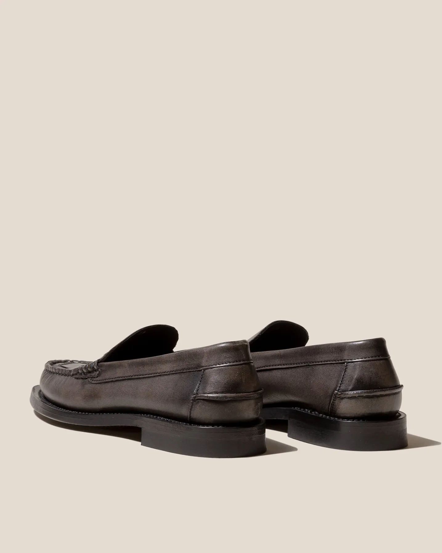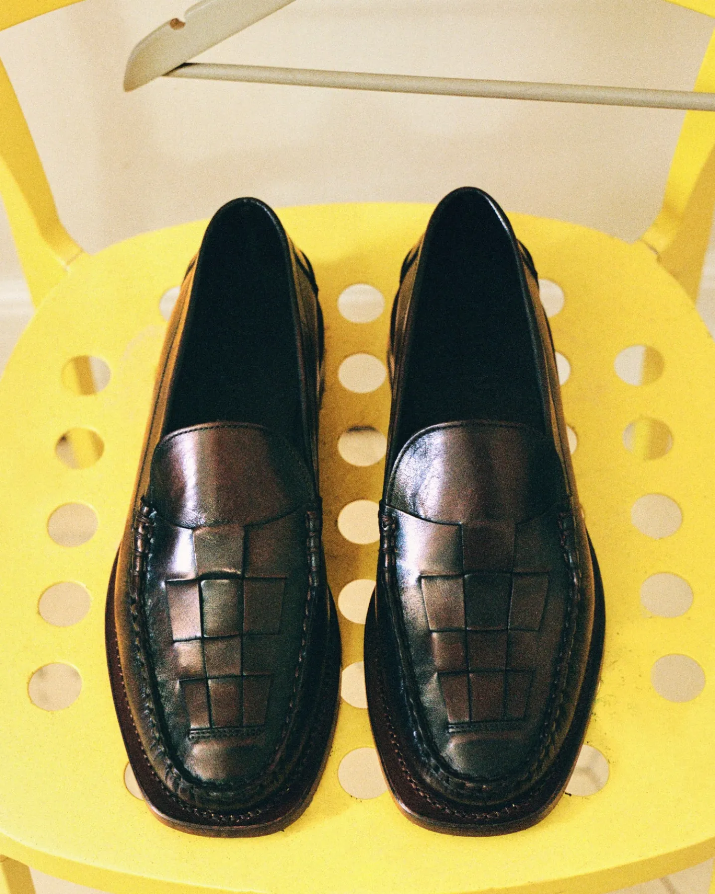 Slip-on loafer with interwoven front detail, crafted in duotone brushed calf leather.