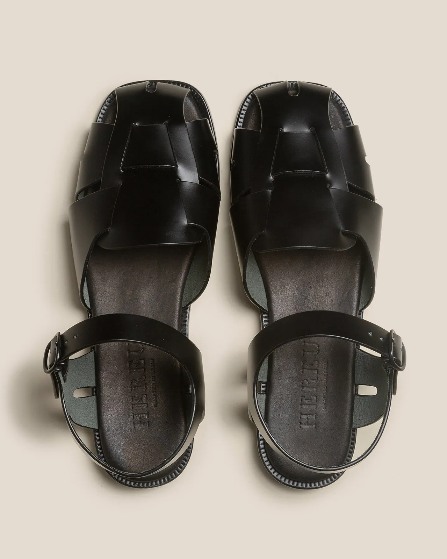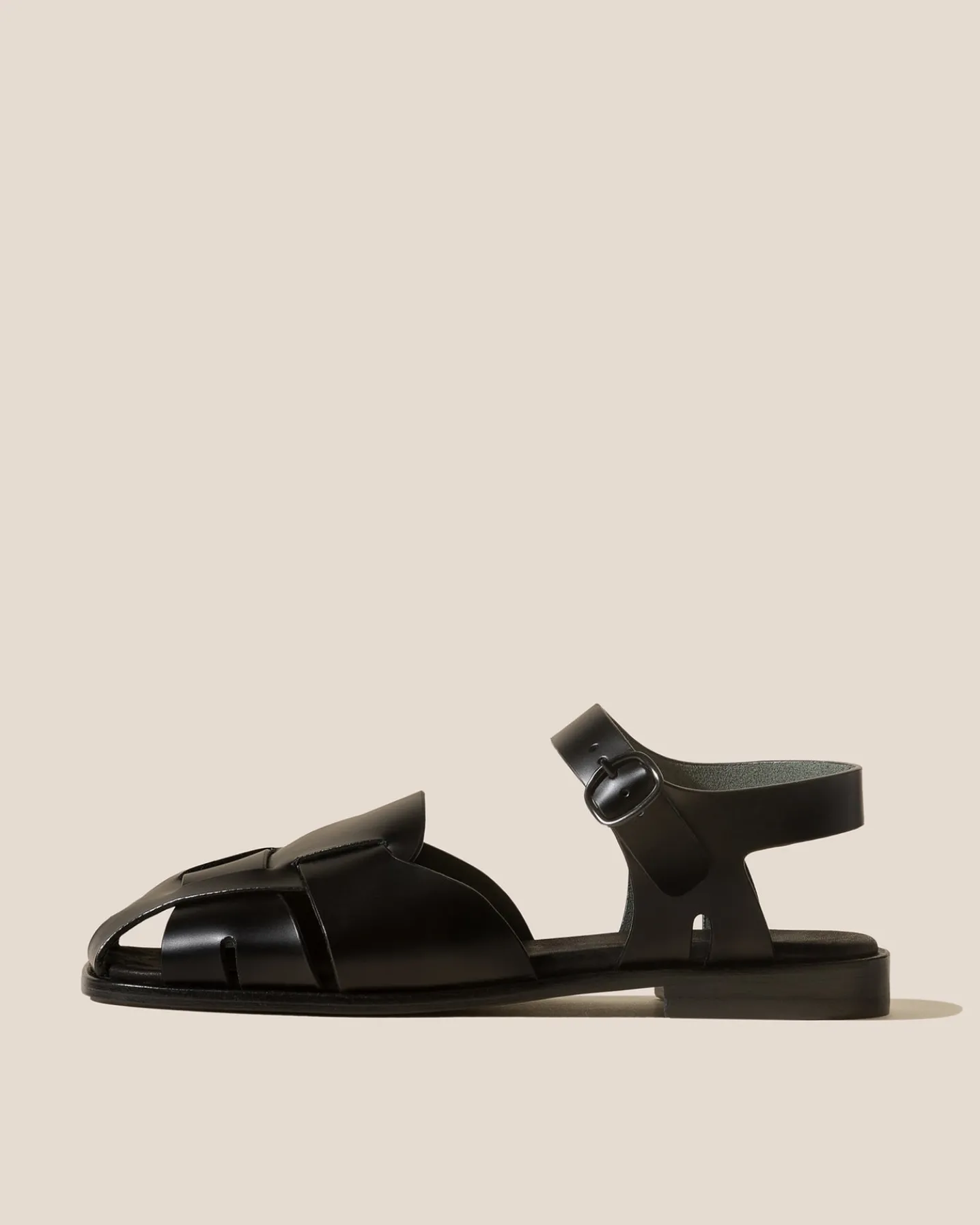 Squared closed-toe fisherman sandal with cut out front detail, crafted in structured calf leather.