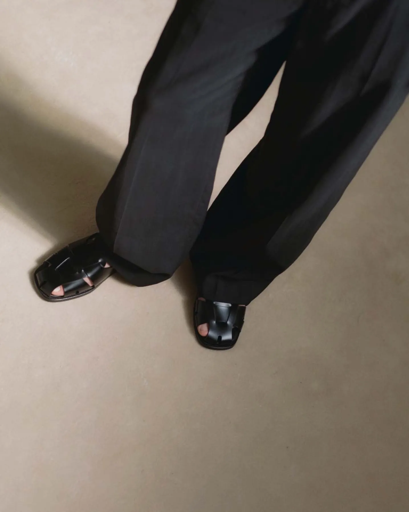 Squared closed-toe fisherman sandal with cut out front detail, crafted in structured calf leather.