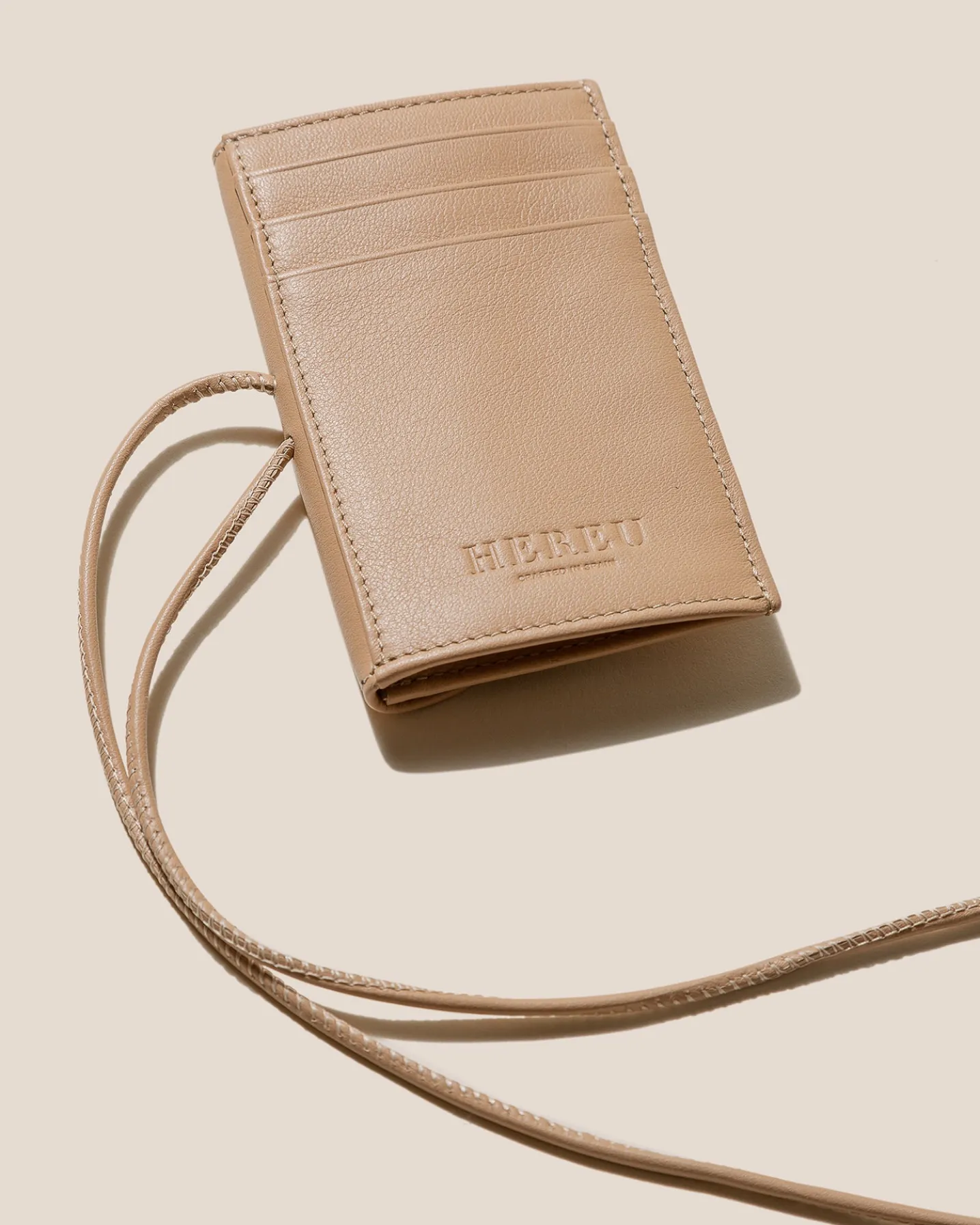 Coin purse and card holderwallet with adjustable strap crafted in calf leather.