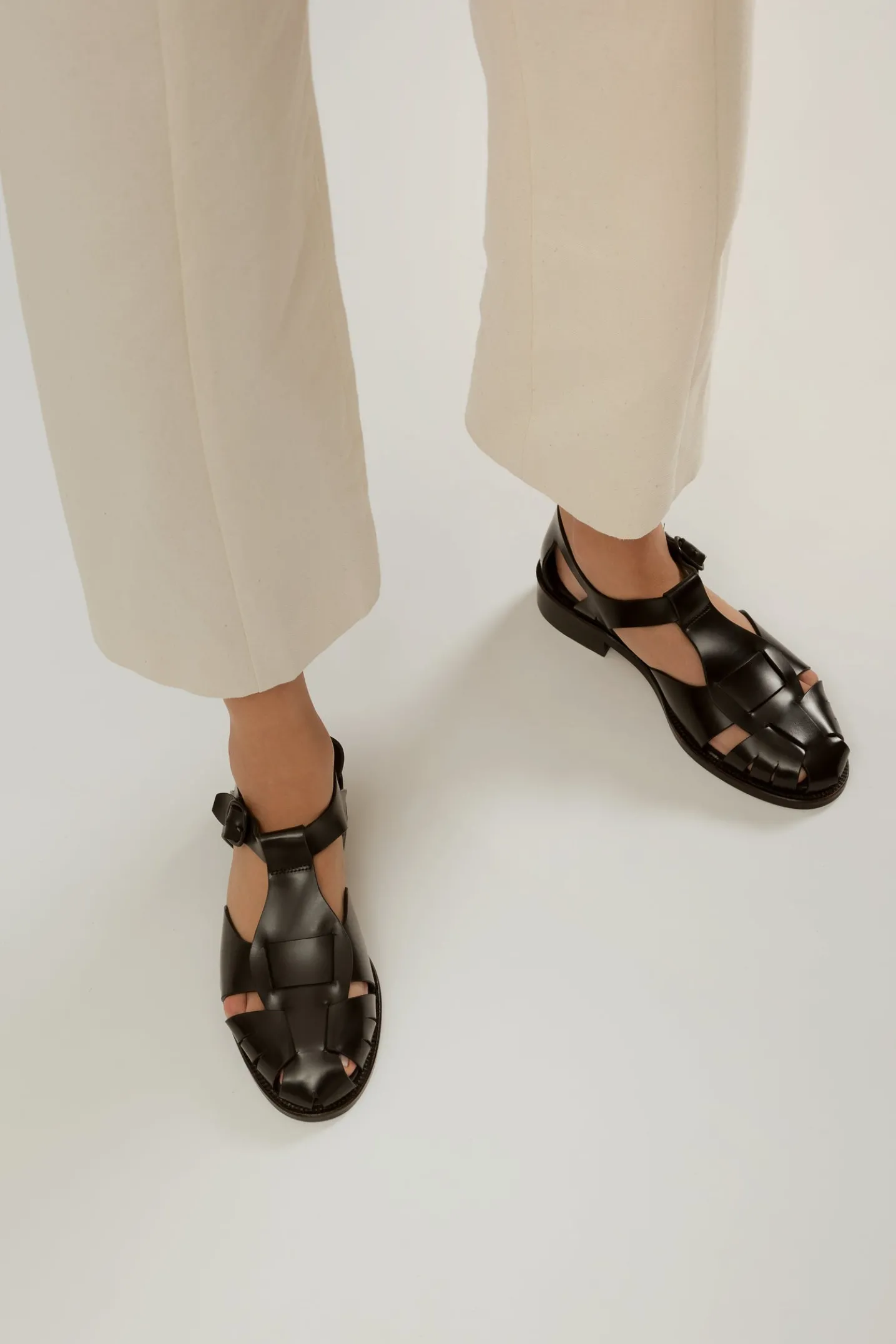 Round-toe fisherman sandal with cut out front detail, crafted in Spanish calf leather.