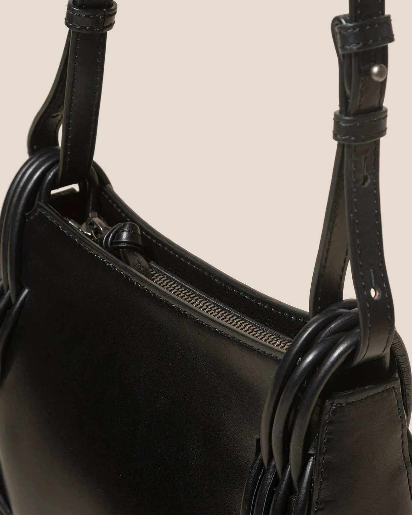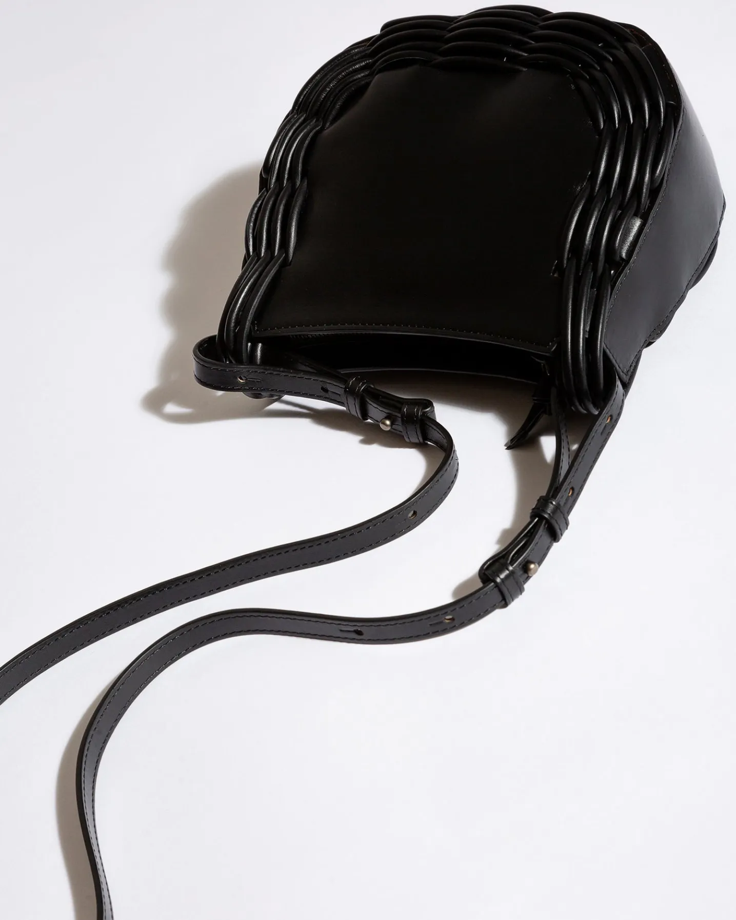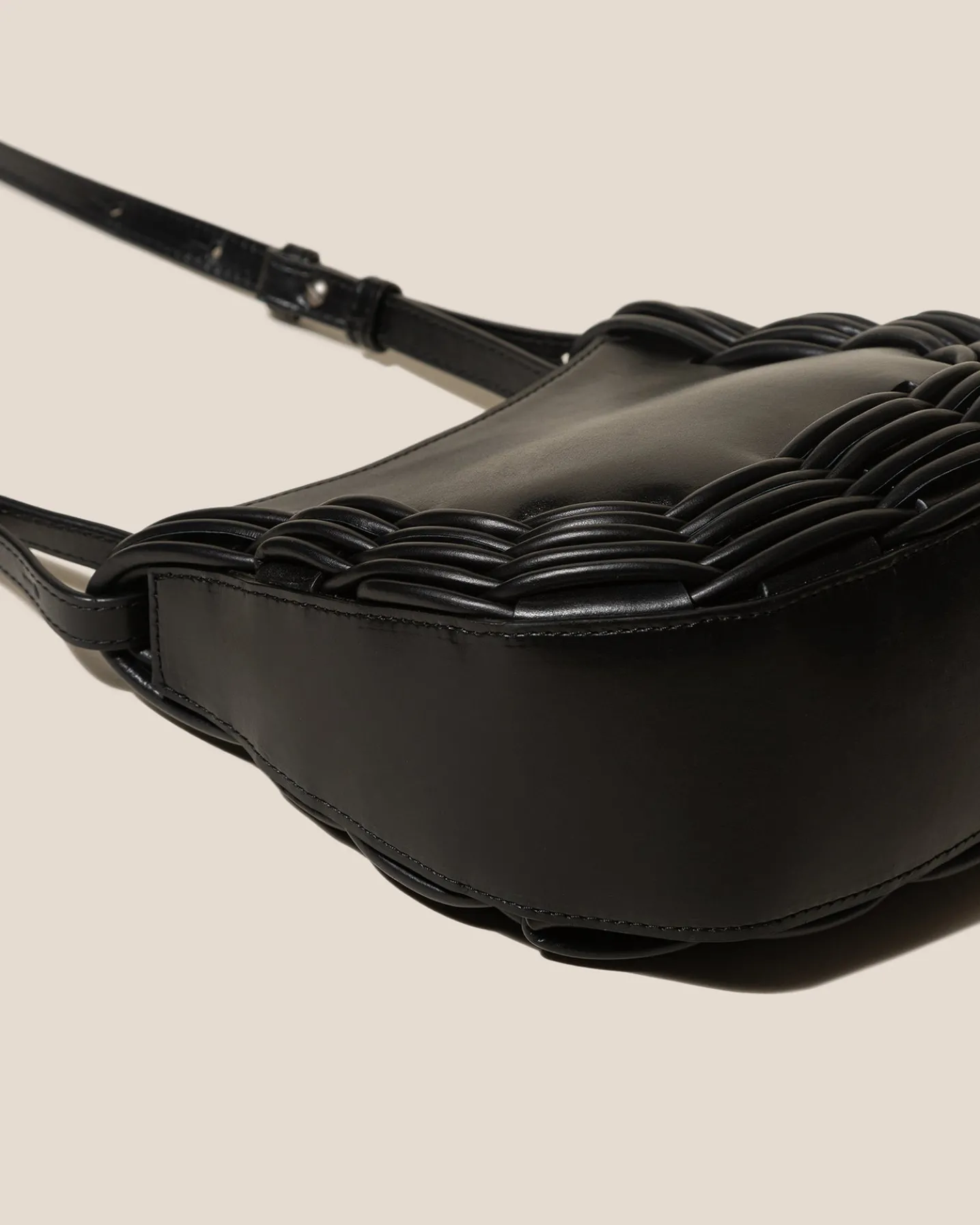 Braided detail crossbody bag crafted in polished calf leather.