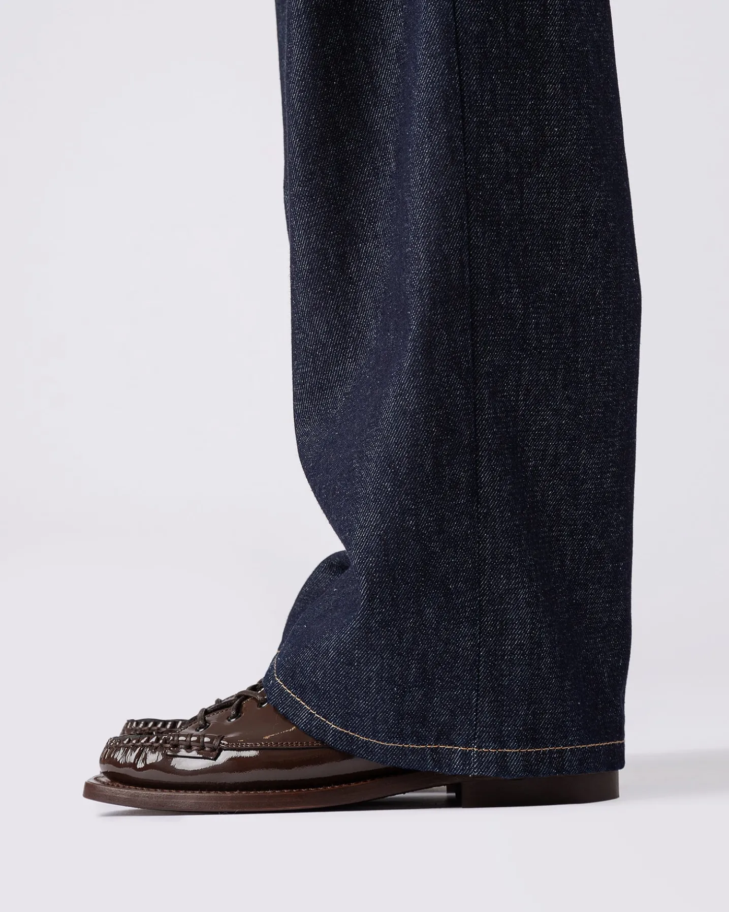 Lace-to-toe loafer crafted in glossy calf leather. The upper has been hand sewn using the traditional moccasin construction. The outsole is stitched to the upper for extra flexibility and durability.