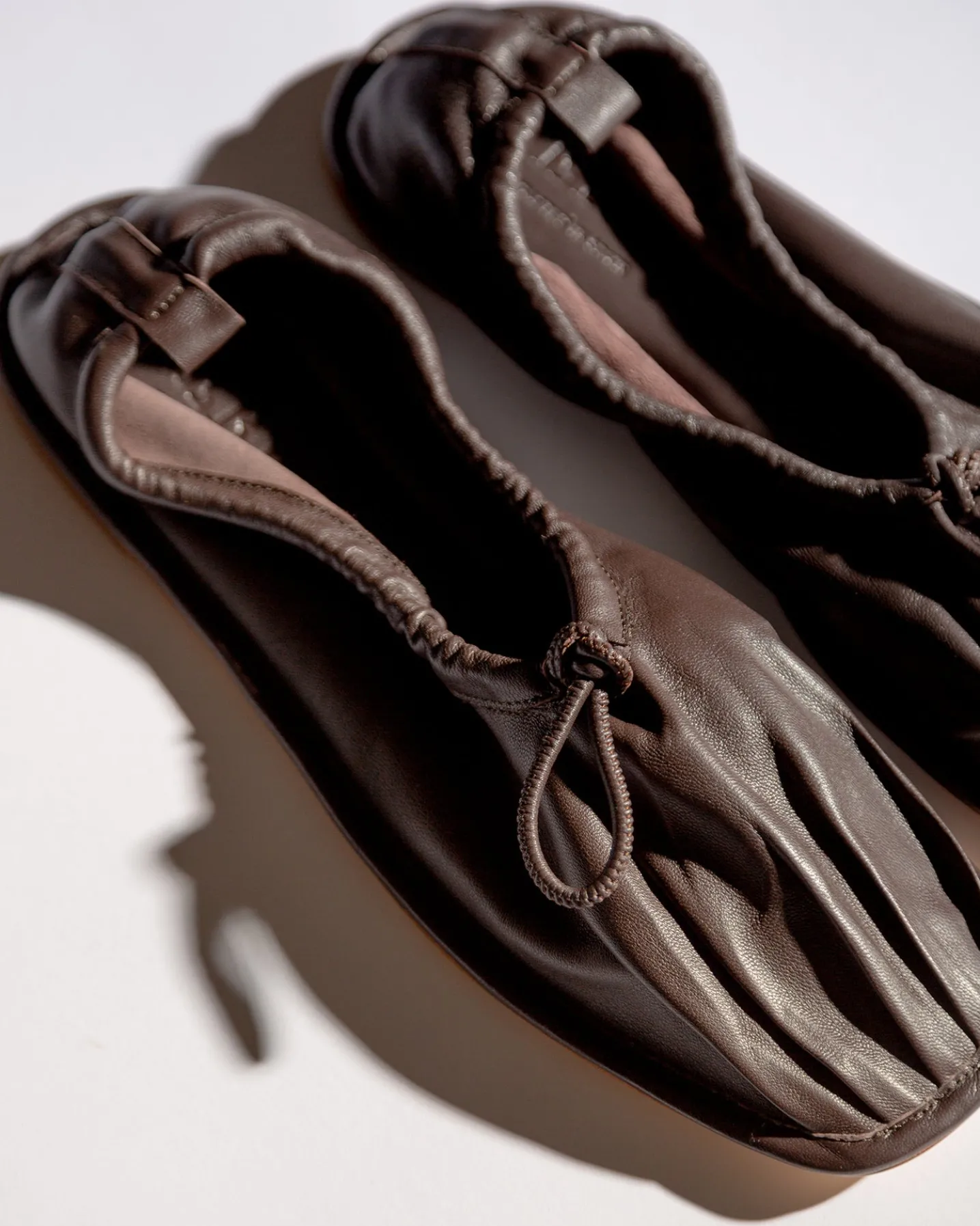 Square-toe pump with pleated toe detail, crafted in unlined soft lambskin.
