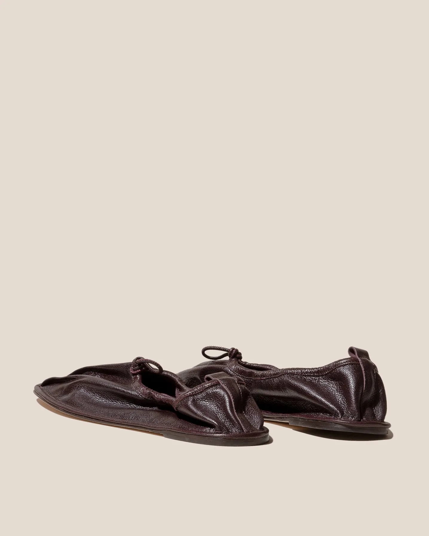 Square-toe flat pump with pleated toe detail, crafted in supple shiny lambskin.