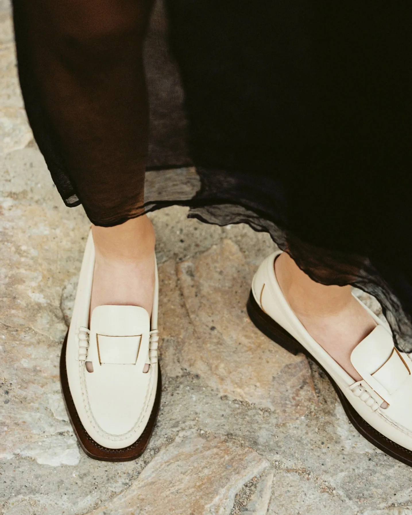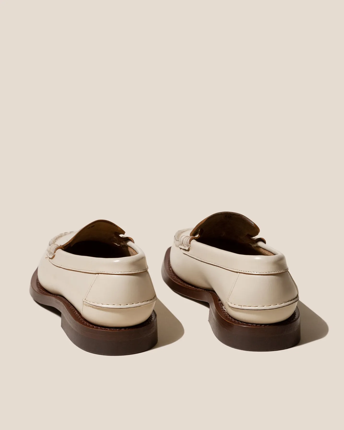 Slip-on loafer with interlaced detail crafted in Spanish structured calf leather.