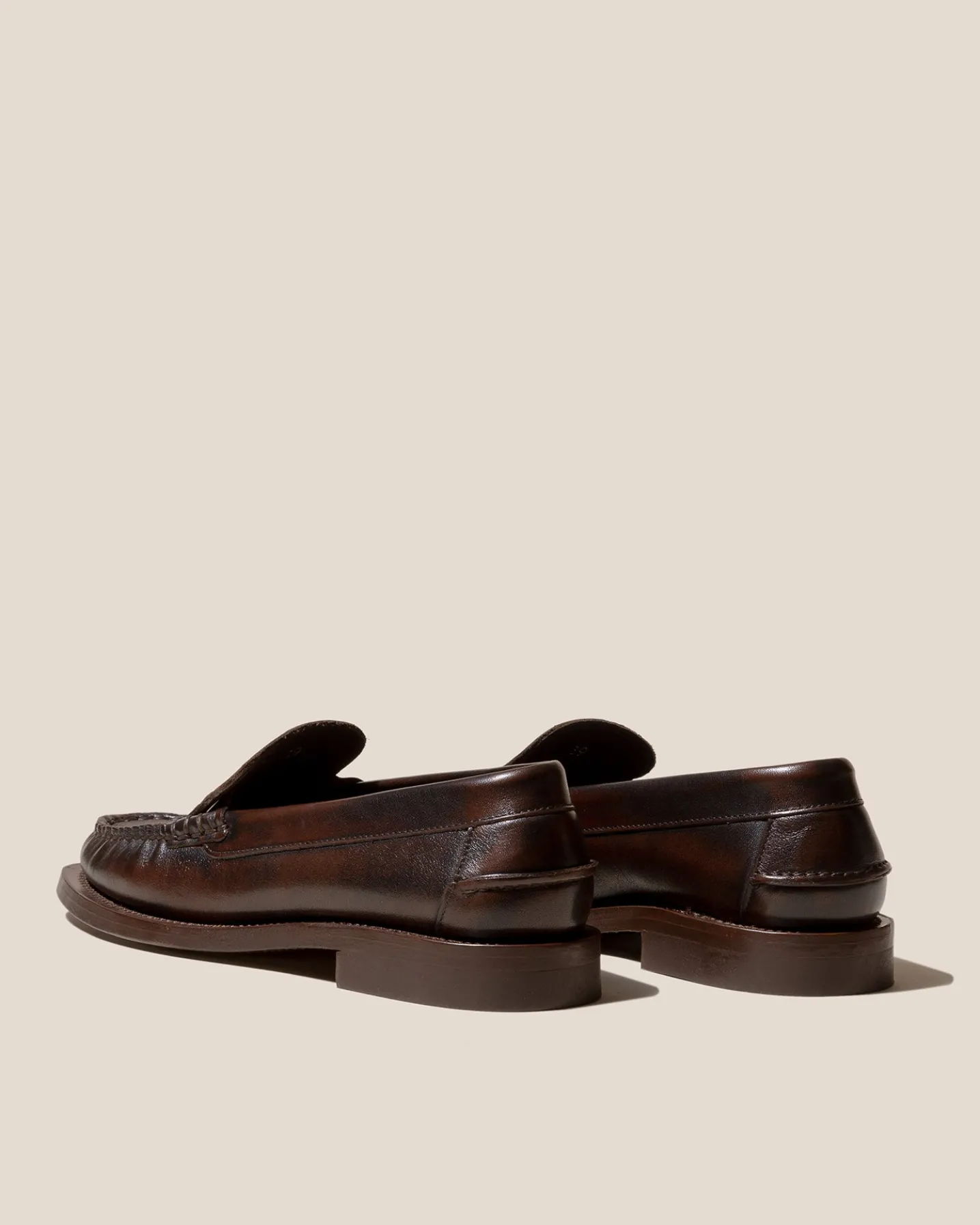 Slip-on loafer with interlaced detail crafted in duotone brushed calf leather.
