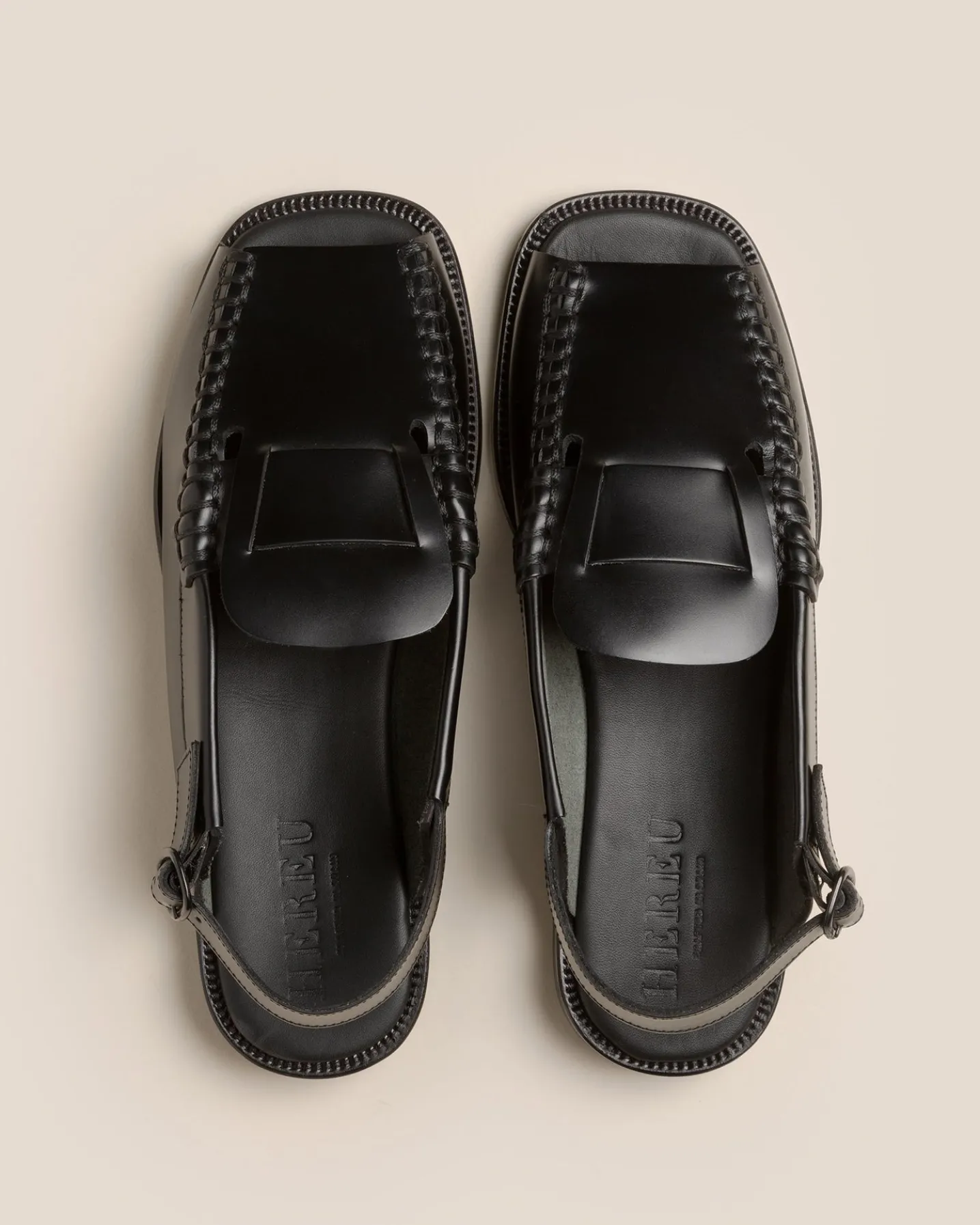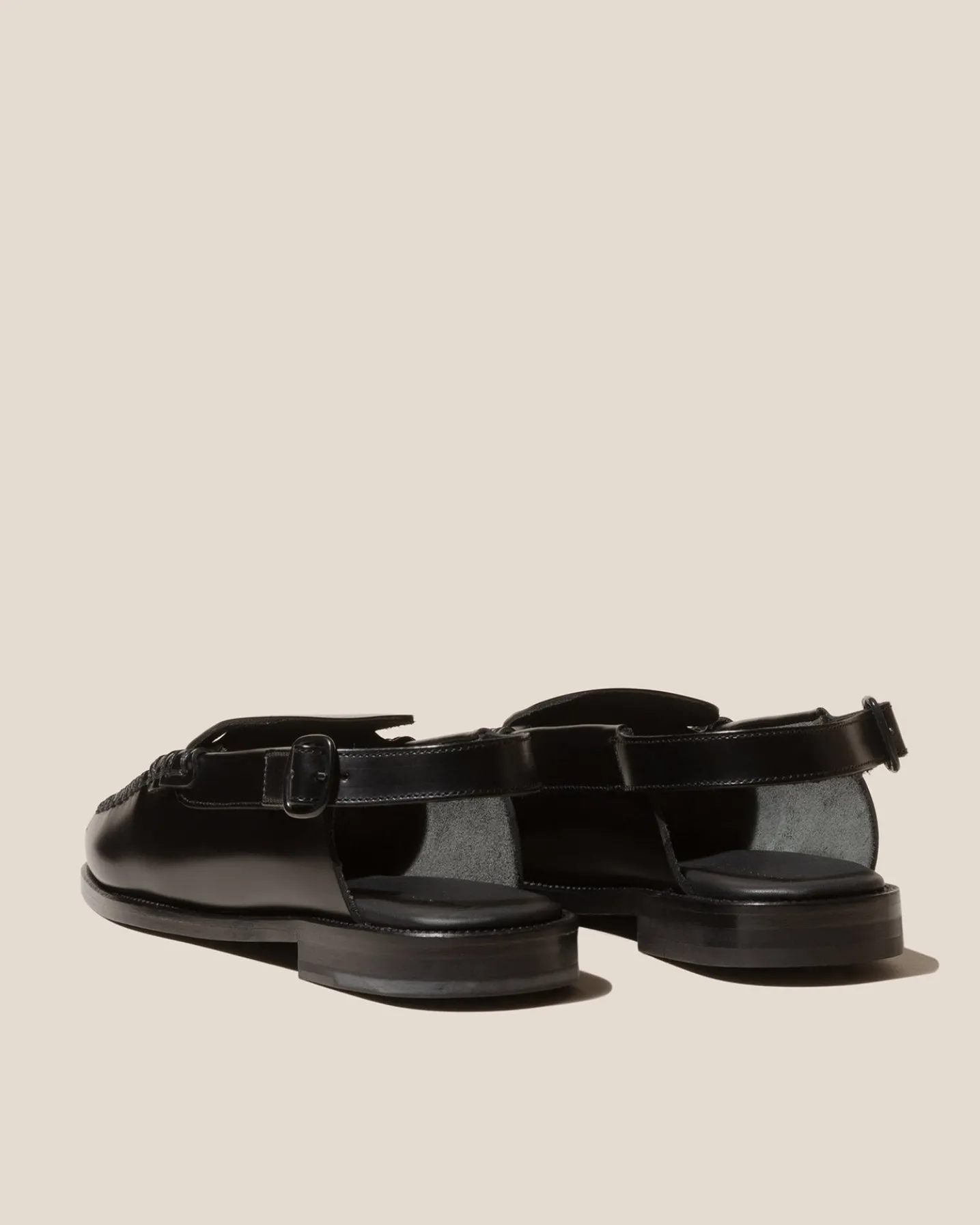 Opened-toe slingbackloafer with interlaced front detail crafted in Spanish structured calf leather.